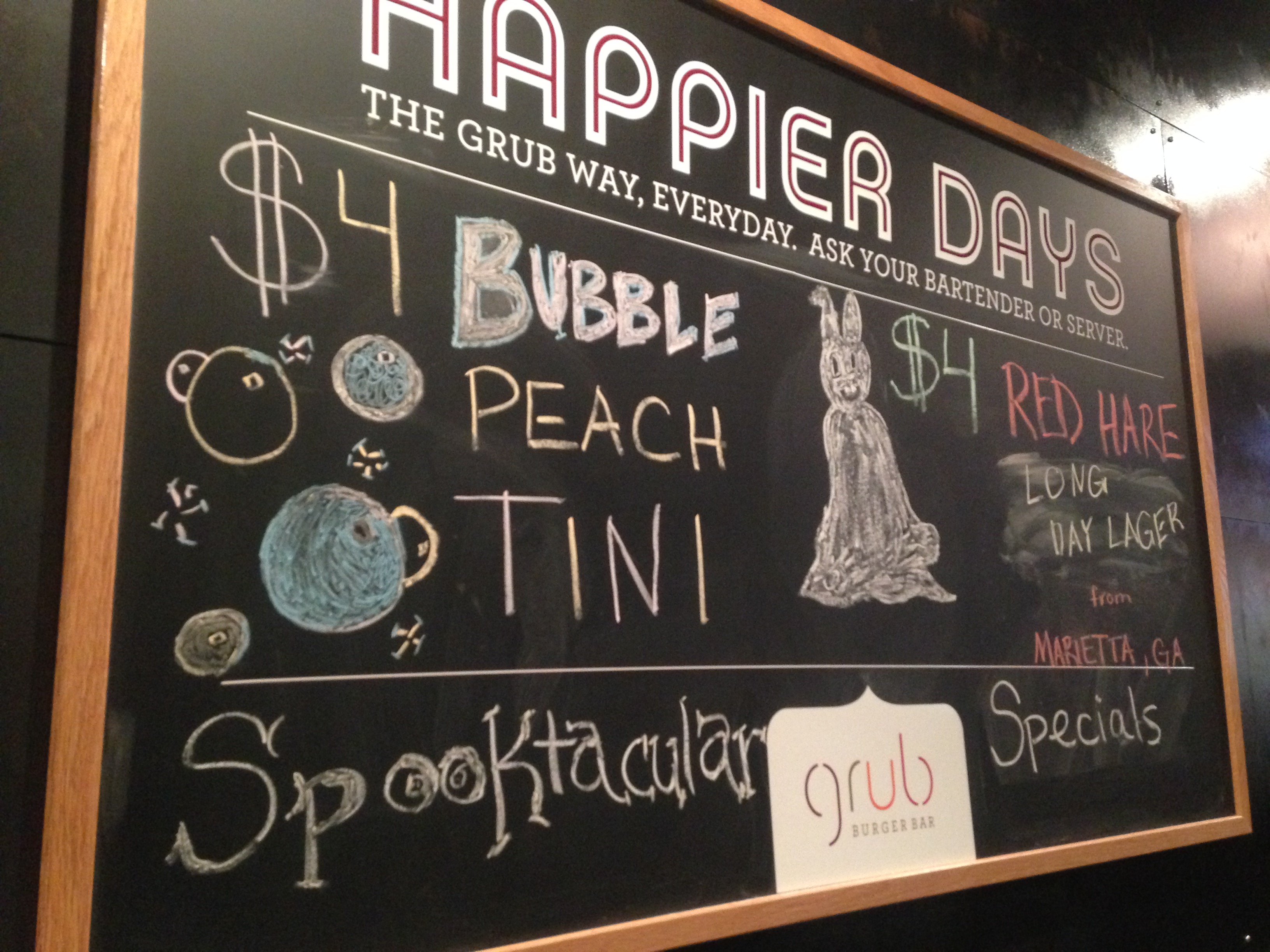 The bottom line on Grub Burger Bar: Fresh buns and juicy patties make for a really good burger. The sides are tasty too. Stick to the regular bar menu, though, and skip the boozy shakes. The regular shakes are probably just as good and have about the same amount of alcohol as the boozy one we ordered. Don’t forget to order your drink at the bar before you order your food at the window so you don’t mind the wait.