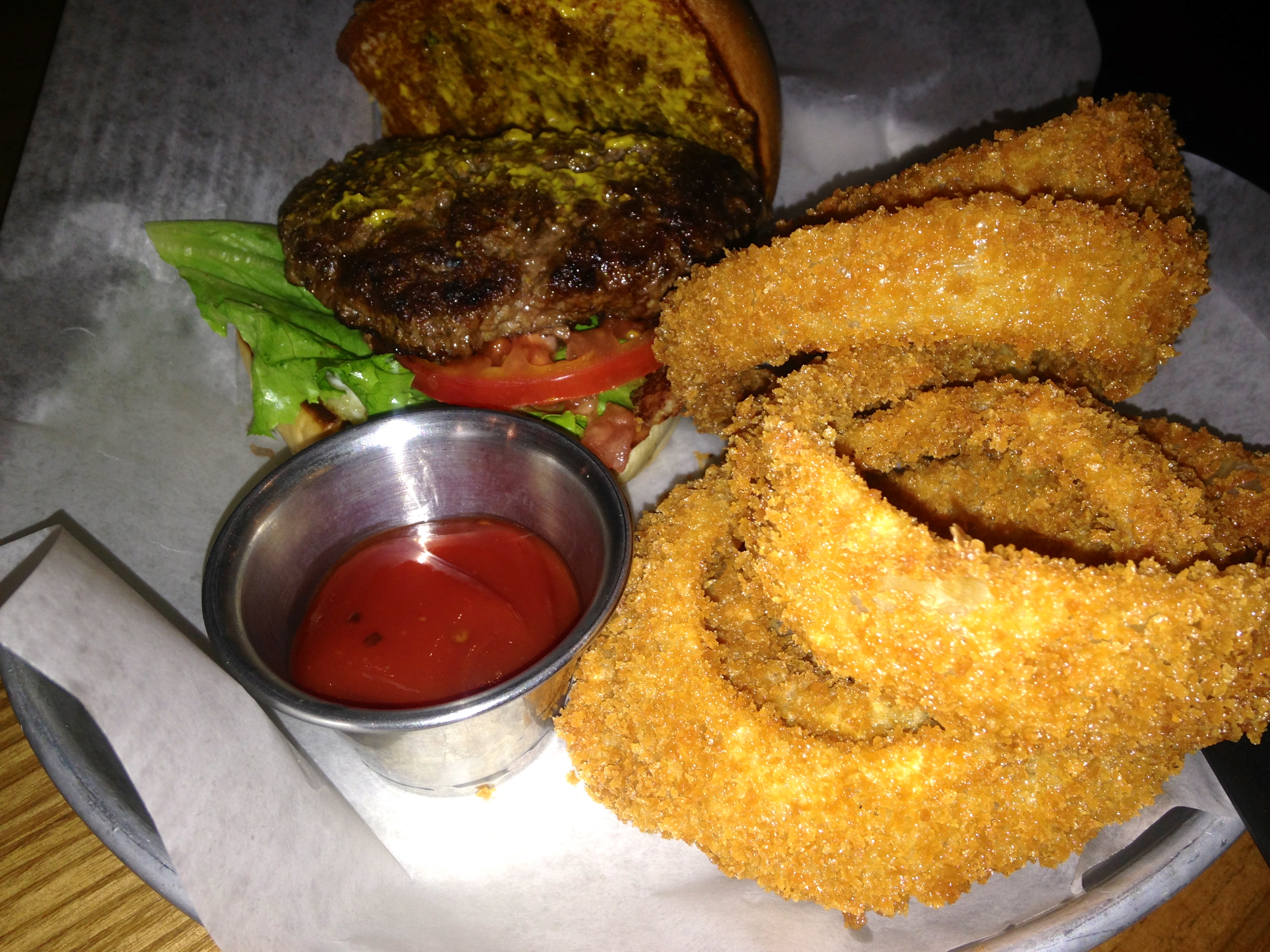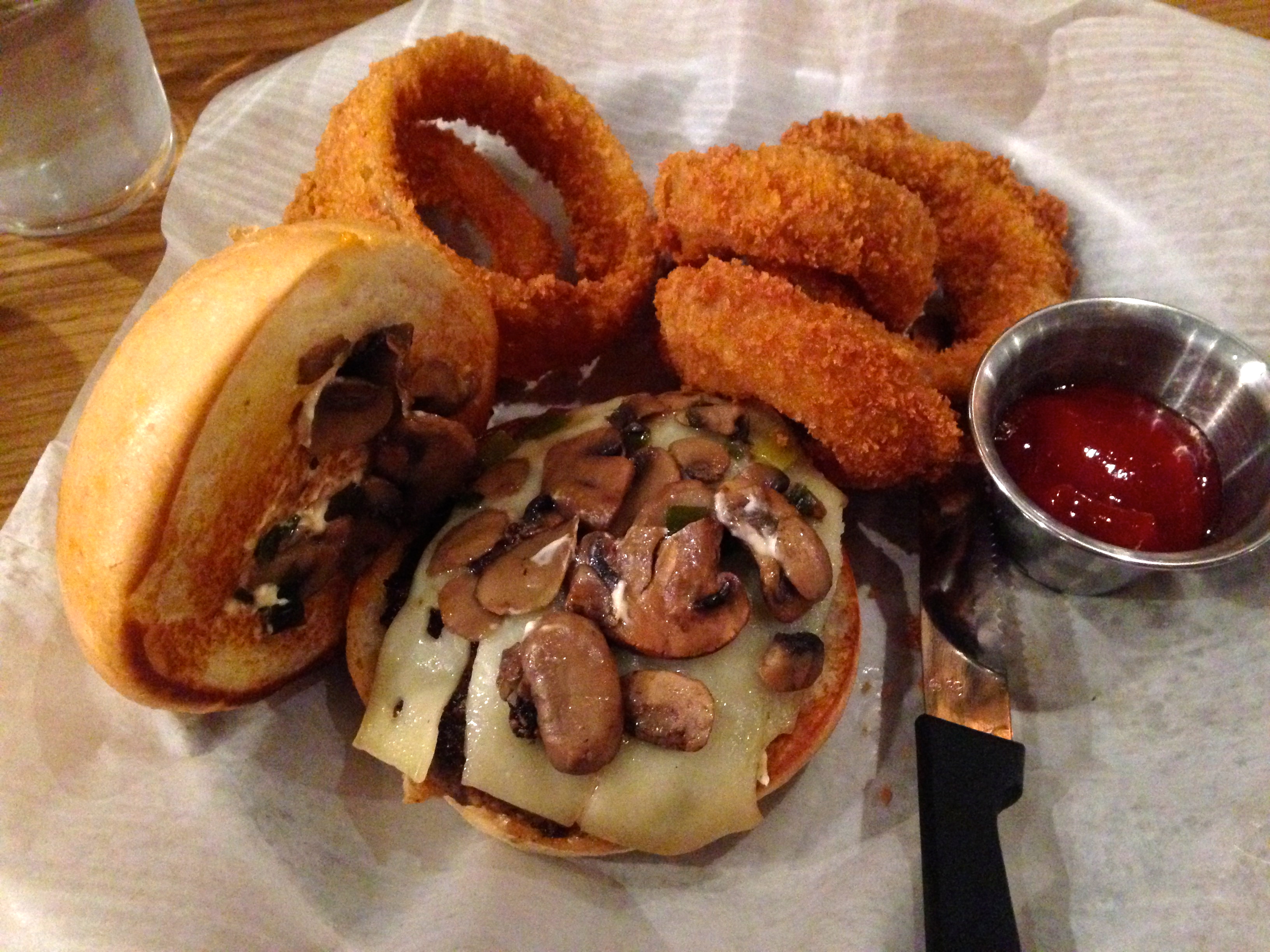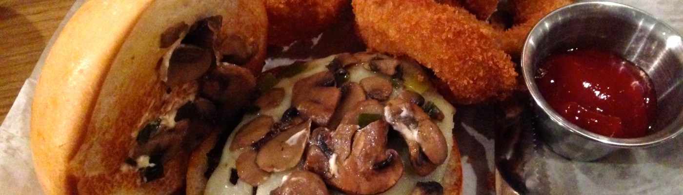 Fresh off of our visit to the Publik Draft House absinthe bar, Eve orders the VooDoo mushroom burger.