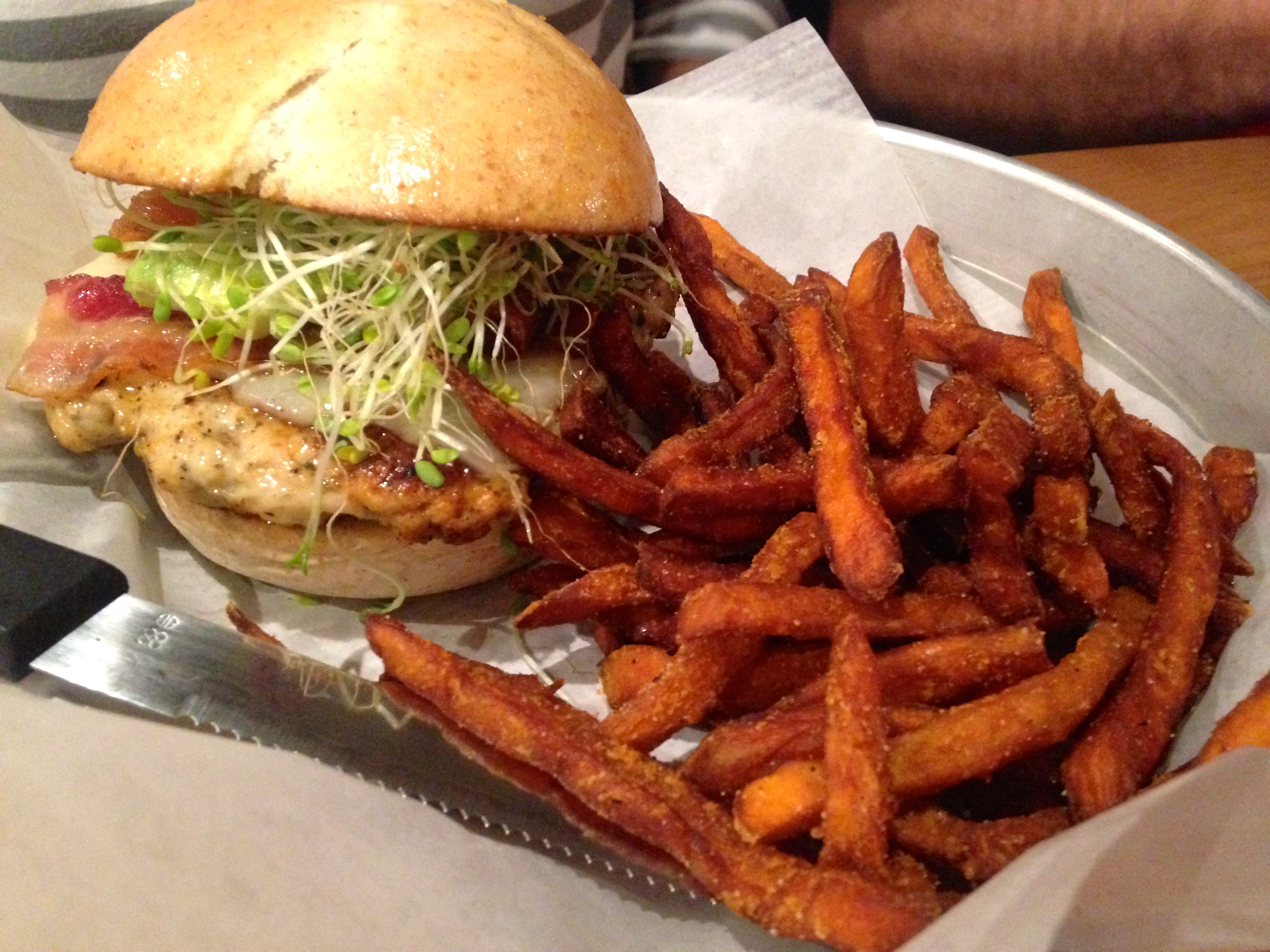 She gets the Jive Turkey Burger with an order of sweet potato fries. The fries have “rosemary dust” on them. Magically delicious.