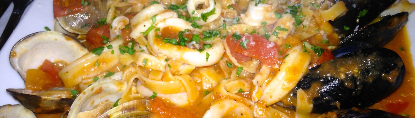 The huge portion of house-made pasta comes with mussels, clams, shrimp, and calamari in a red sauce, or a white wine sauce if you prefer. Somehow or another, I finish the whole plate. I do consider licking the plate, but alas, I am stuffed.