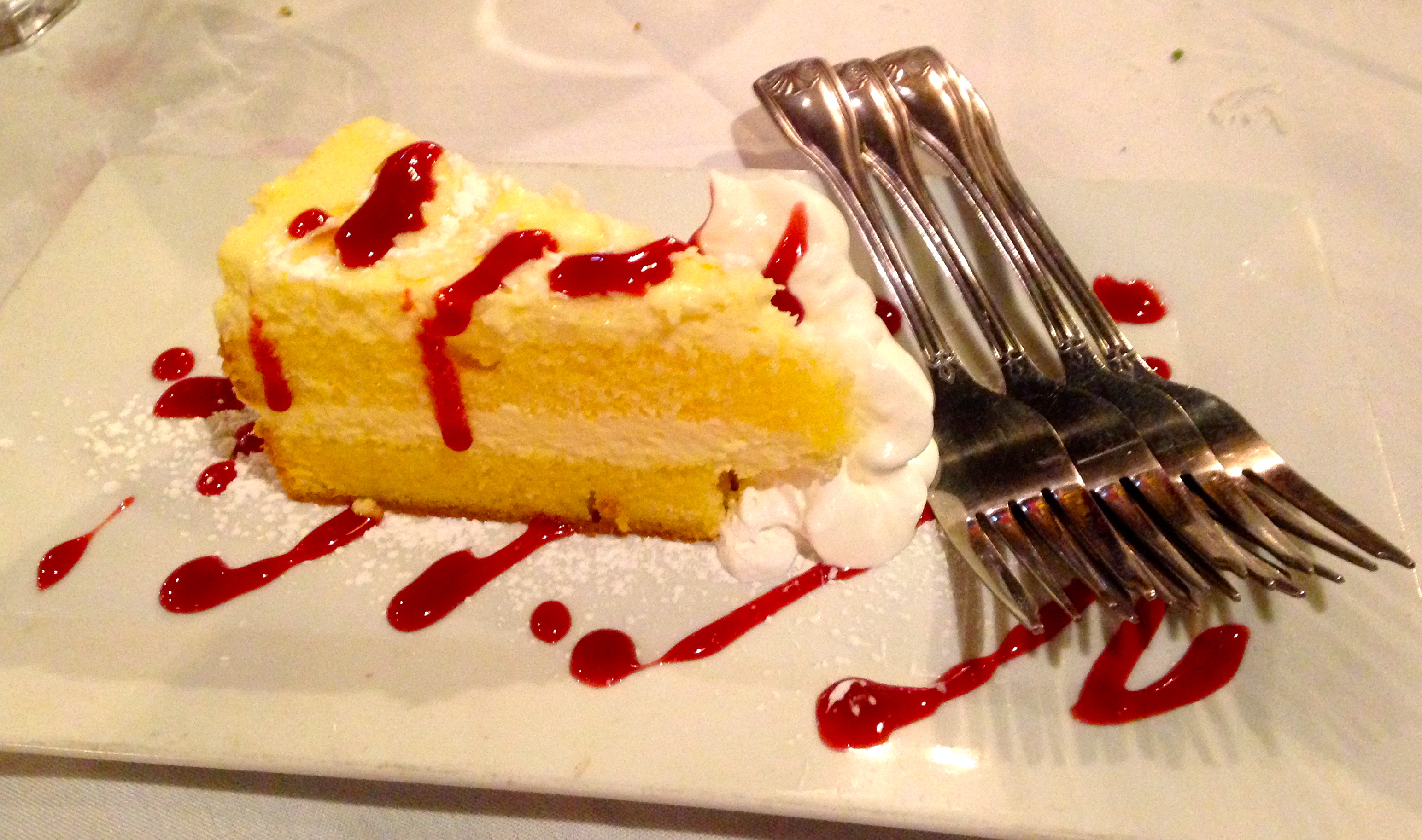 We probably shouldn’t order dessert, but we do anyway. At least we got four forks with it and shared.