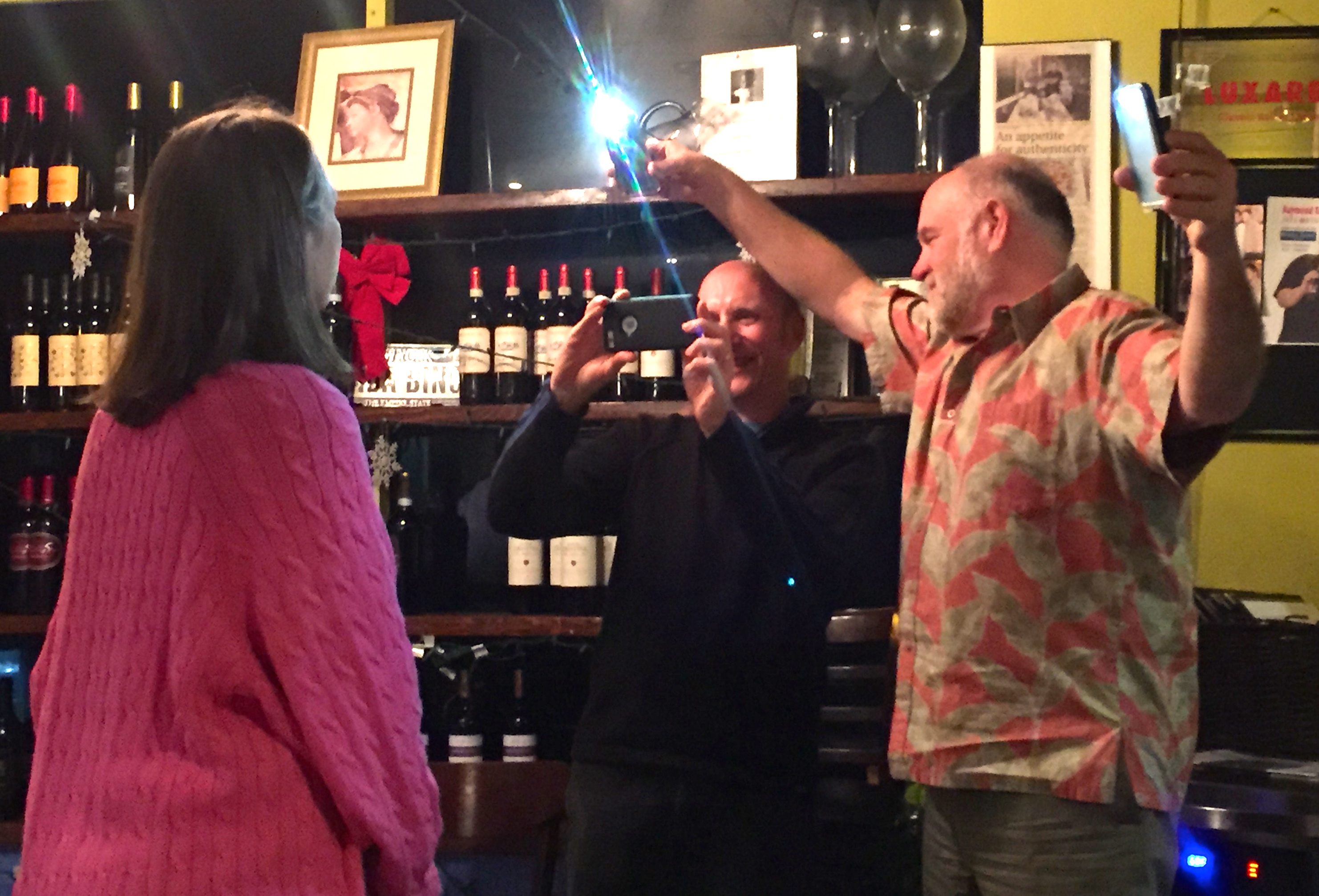 And you get photos (courtesy of Claudia) of us shooting our exclusive Tastemade video on Mezza Luna that you can watch here. Randy is an excellent lighting director, holding up two phones to create enough light for Eve’s video.