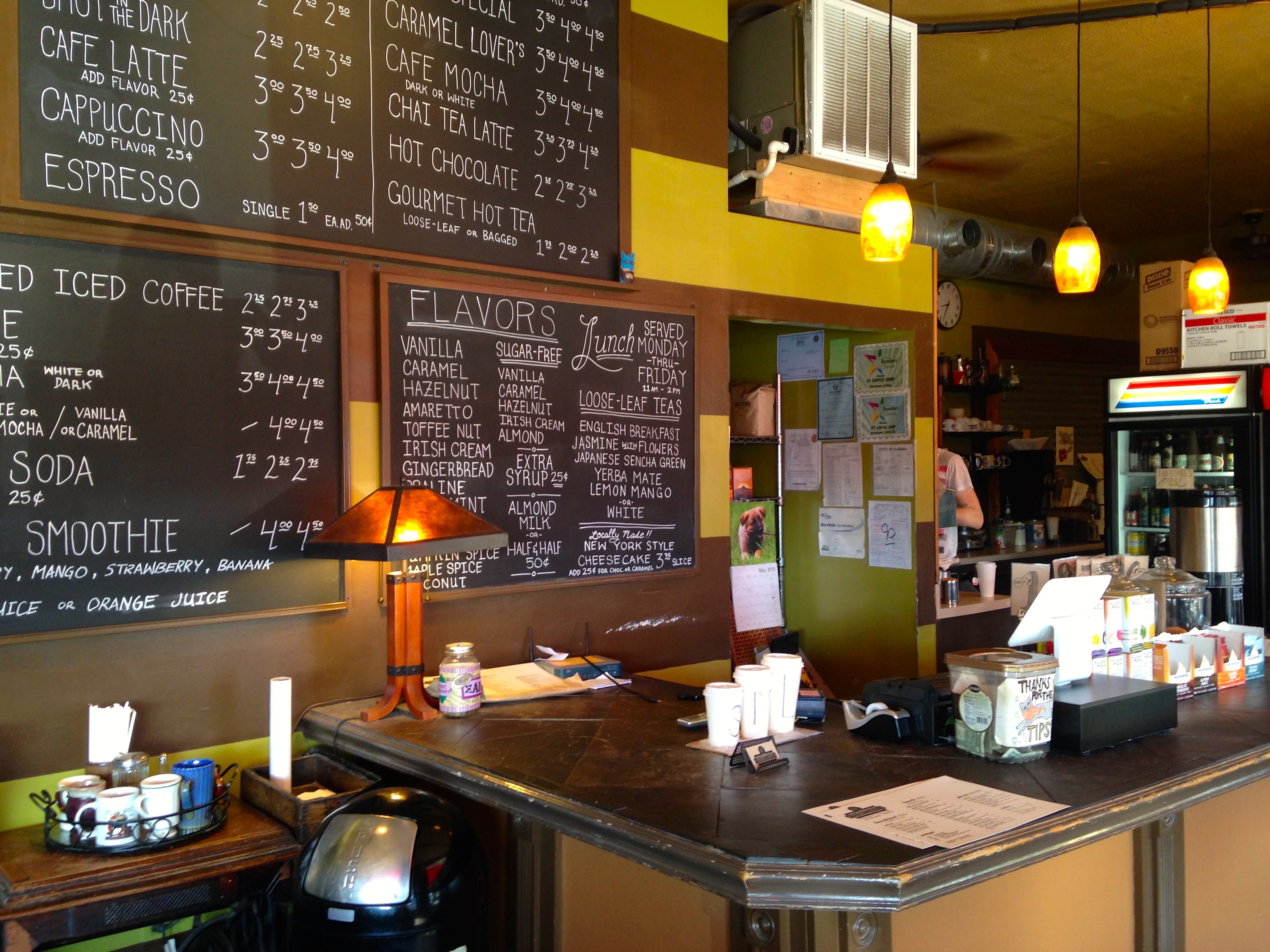There is funky artwork on the walls, which you can buy if you want. Like most coffee houses, you belly up to the coffee counter and order.