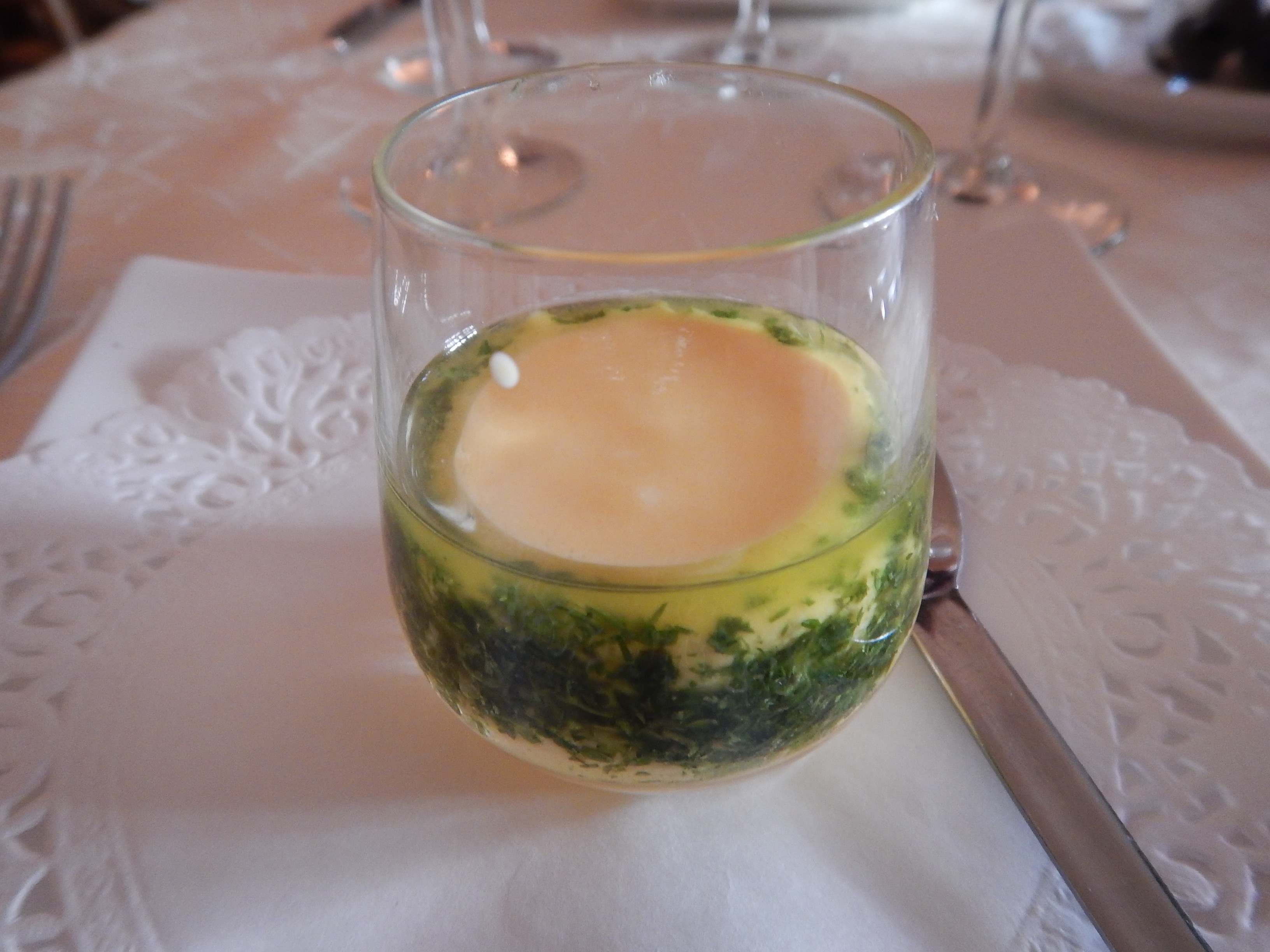 The best meal out this week is at Auberge la Bartavelle in Vaison-La-Romaine. It is like a wild goose chase to find it, but it was worth it in the end. We start with the chef’s choice amuse bouche which was a cold creme of carrot soup with olive oil and garlic.