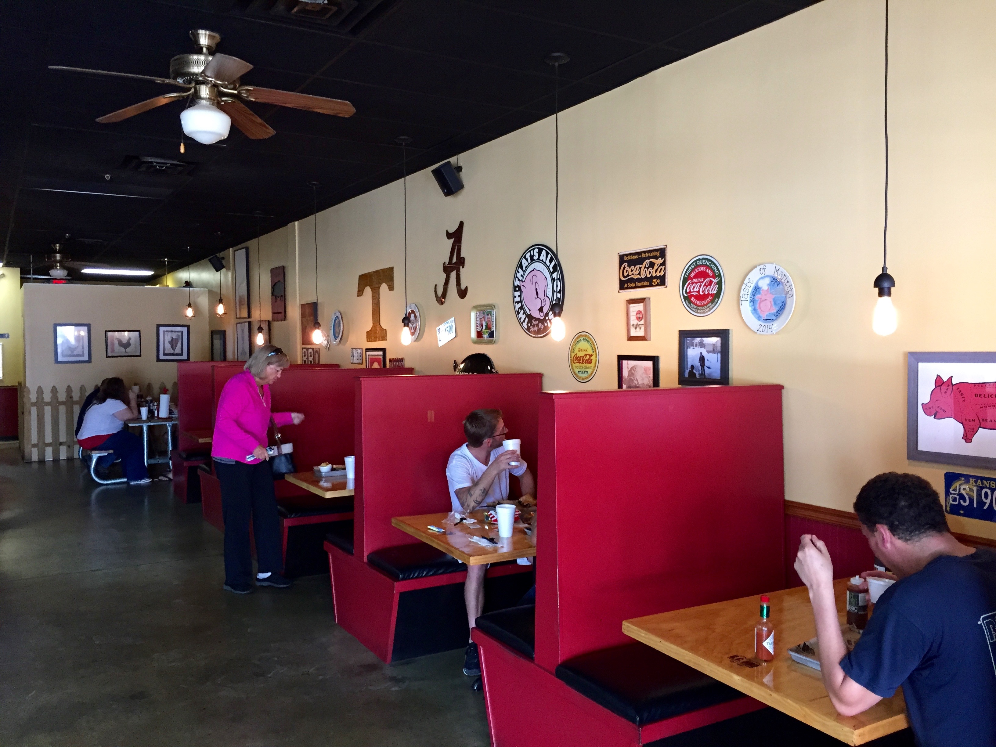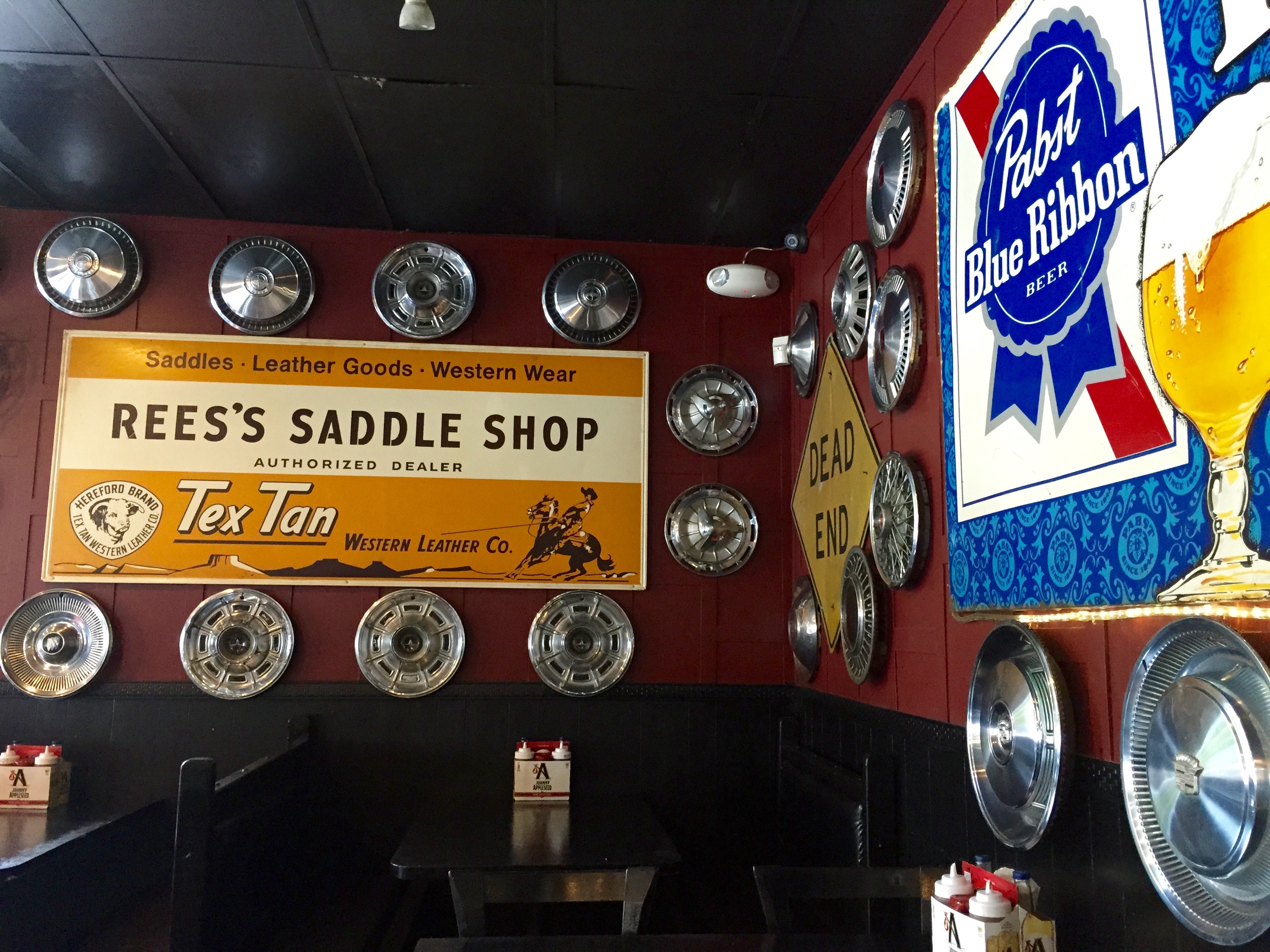 There must be an official “BBQ Joint Decorating Society” that has one rule: you must have car parts and metal signs as part of your decor. Spiced Right is just like the others.