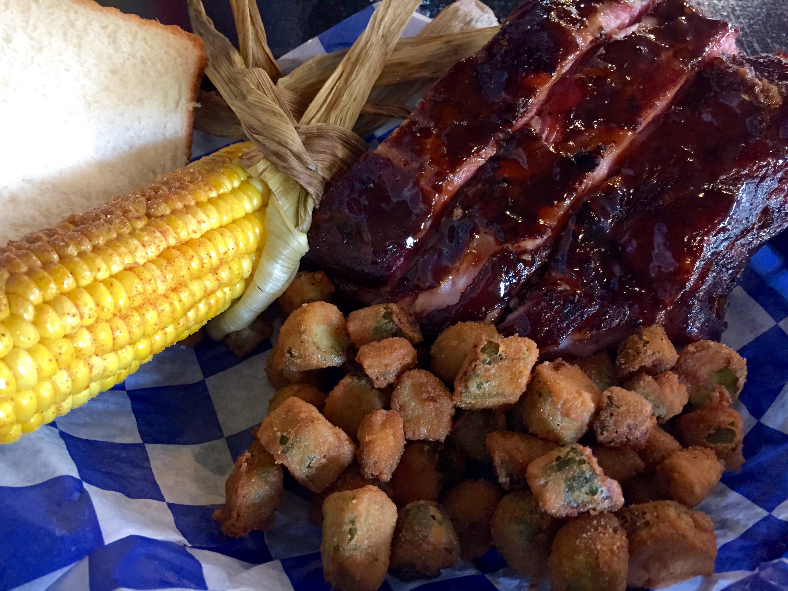 They are full of meat with just the right amount of fat. They are juicy and tender, but not overcooked so they still have a little texture when you bite into them. The corn is cooked in the husk on the smoker and might be one of the best pieces of corn this reporter has ever had. There is no mac and cheese on the menu, but if you are there during the summer and the corn is on the menu, order it. The fried okra is a stand-out as well. It is fresh, hot, and just came out of the fryer.