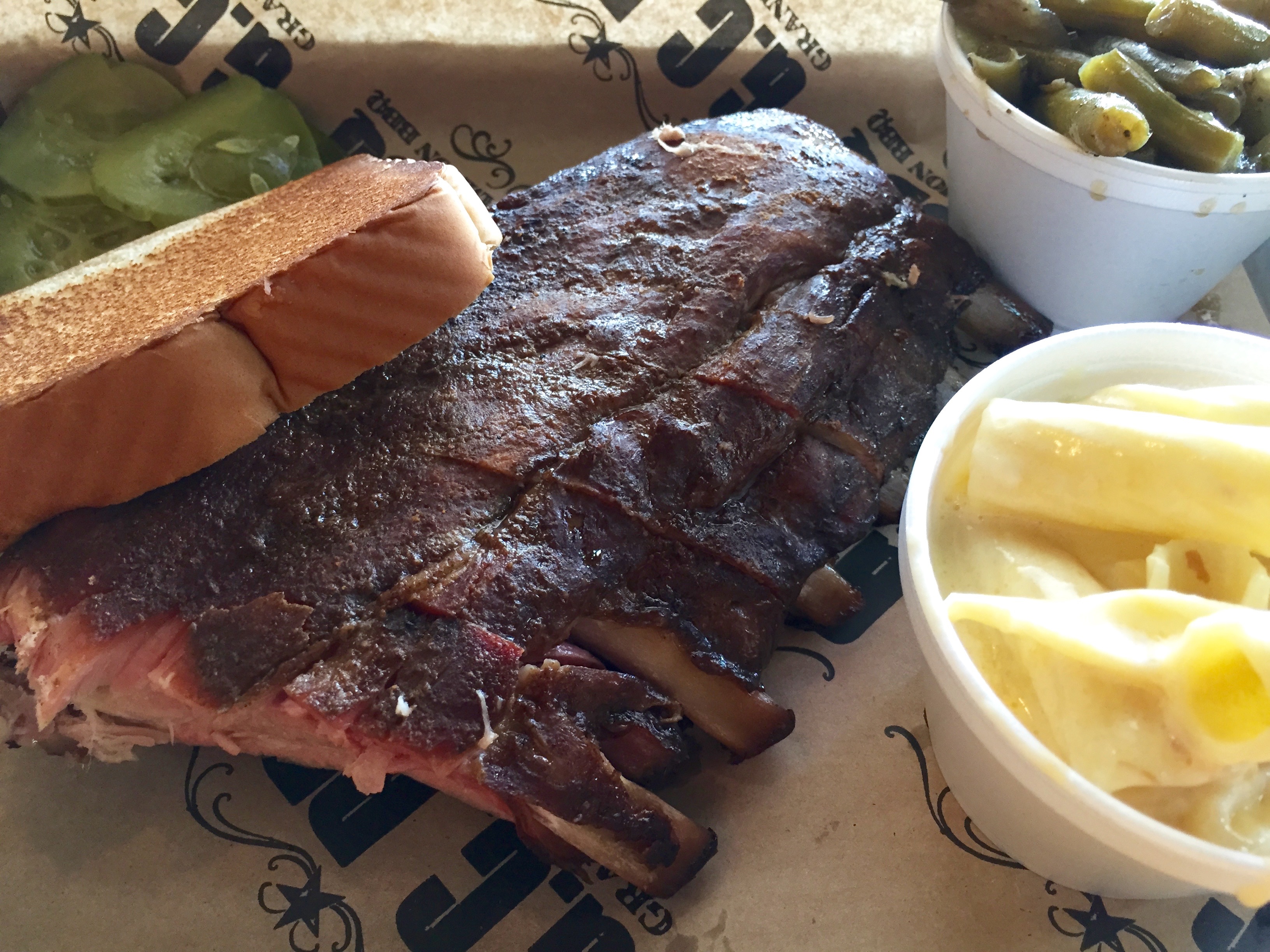 Barbecue connoisseur (another French word!) Grant Goggans over at Marie Let’s Eat has visited over 300 BBQ joints in the southeast and is certainly an expert on the subject. He judges a place by their pulled pork. Here at Date Night, we judge a joint by their ribs. As my cholesterol count rises, I visit three places known for ribs over a period of six days. I order ribs and two sides from each restaurant. I go during lunch, when I figure the ribs will be the freshest and have not been sitting around all day. Our contenders, picked because they are fairly close to each other, are Dreamland BBQ, Grand Champion BBQ, and Spiced Right Ribhouse. Let the rib roundup begin!