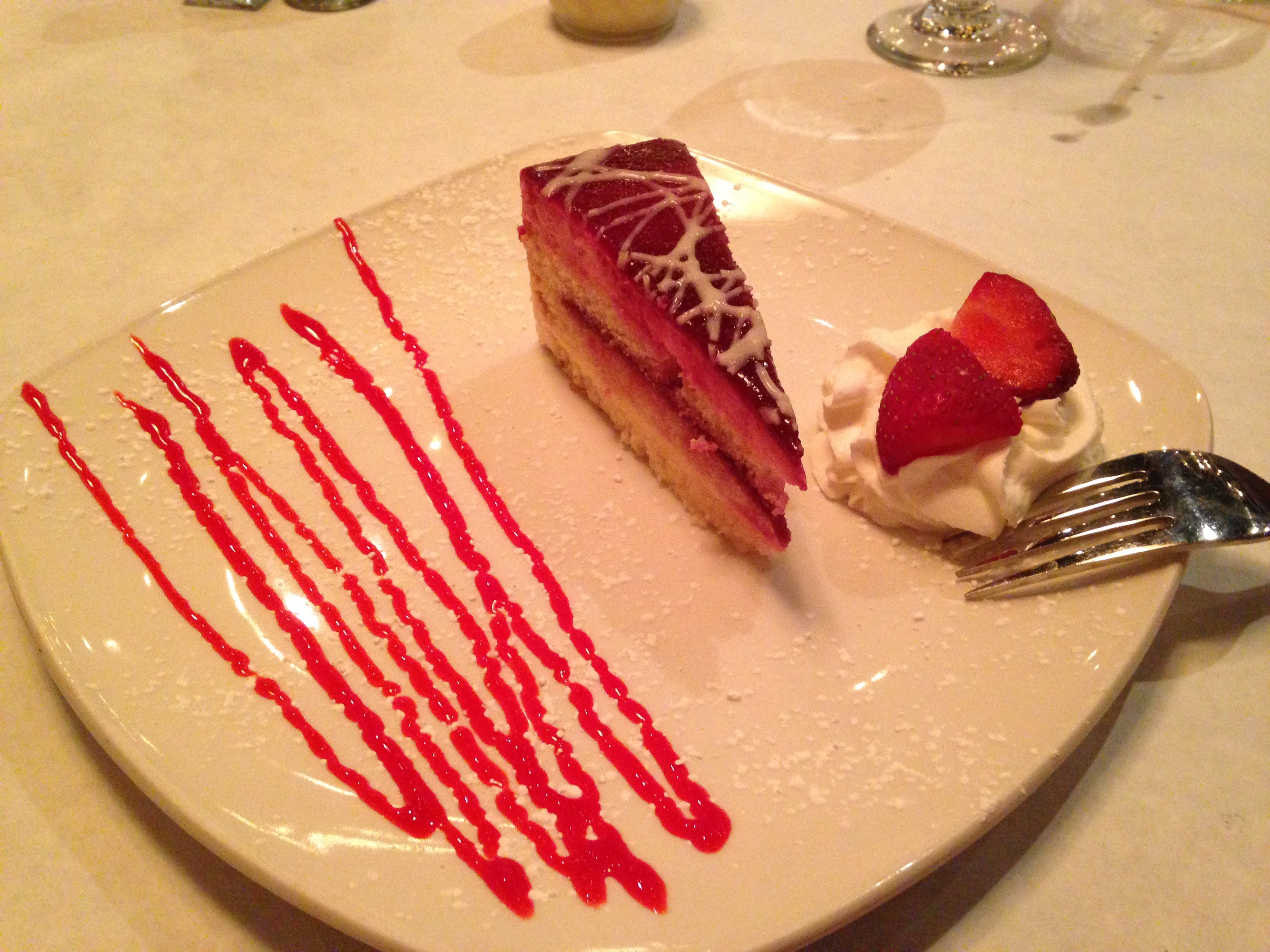 This looks like cheesecake, but look again. It’s a limoncello cake with raspberry icing. It’s a light, sweet way to end our meal at Tavola.