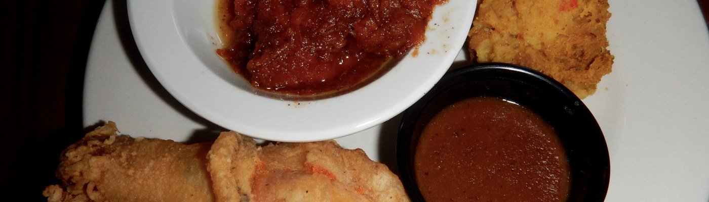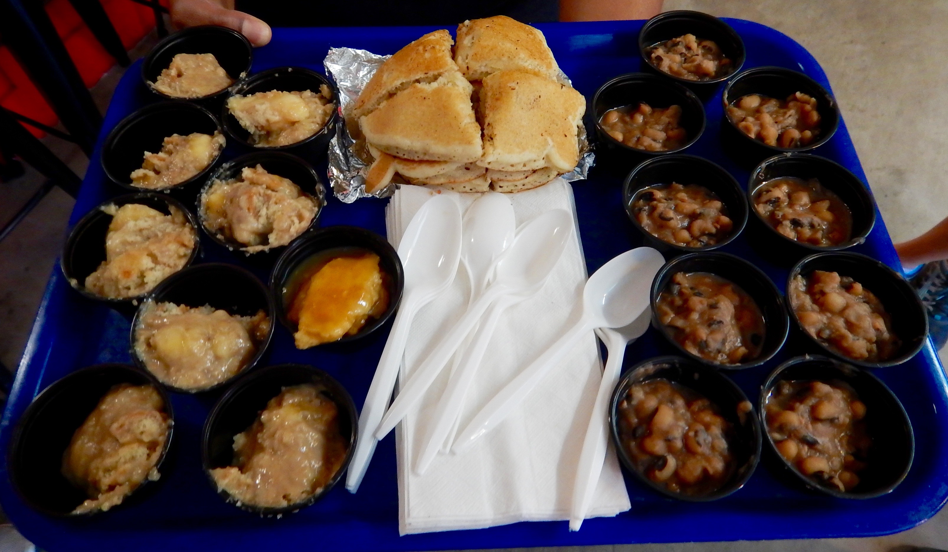 From the right, black eyed peas (not my favorite), hoe cake (looks like a pancake, it’s a Native American form of corn bread), and banana pudding (yes, I could have had more of that one).