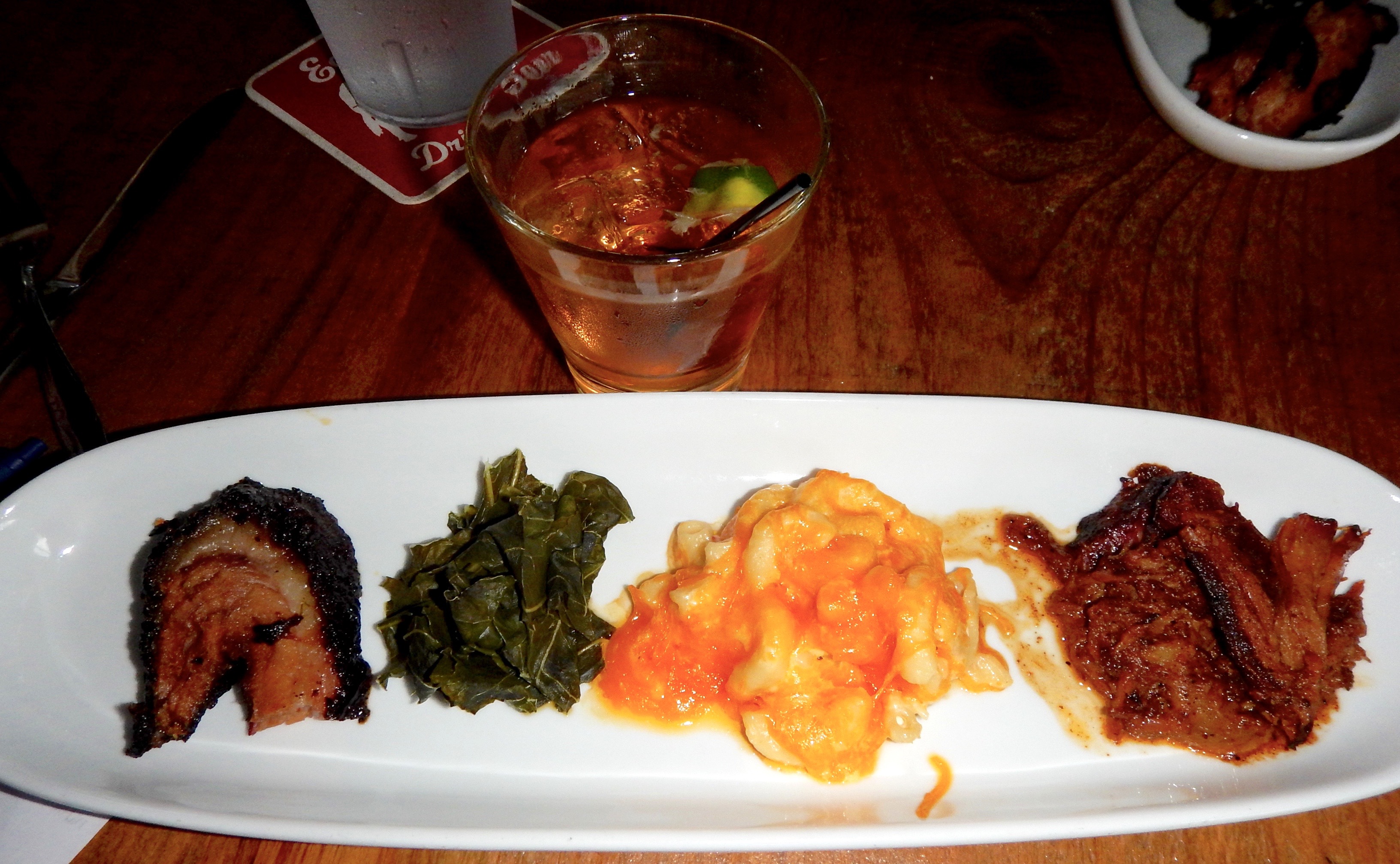 Our next tasting plate features beef brisket, greens, mac & cheese and pulled pork. Smoke Ring “nails it” on every item on my plate.