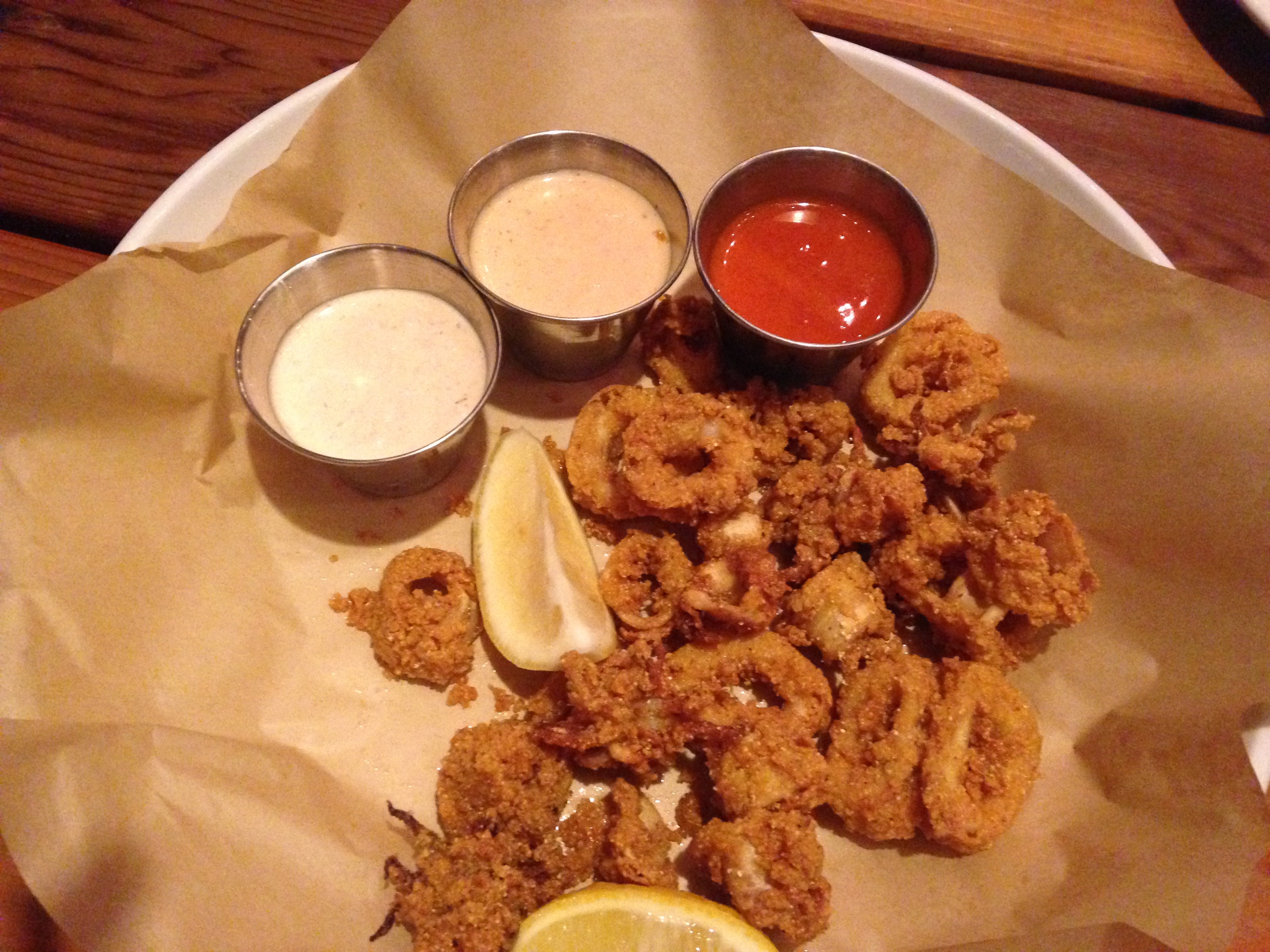 The table is hungry and we order the calamari appetizer. We wait and wait and wait some more and eventually the appetizer arrives.