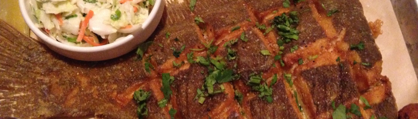 The star of the meal is Eve’s crispy whole founder.