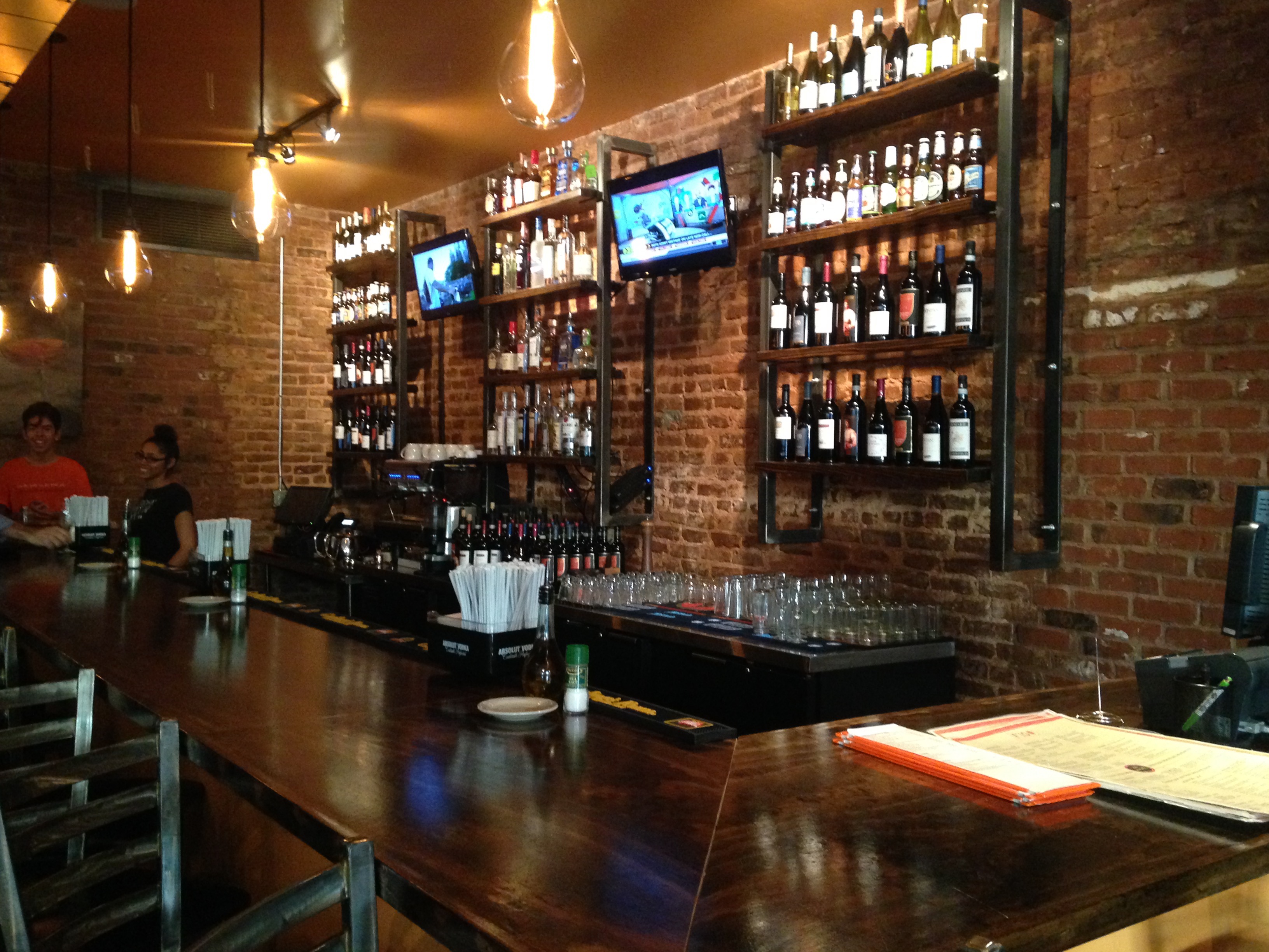 Figo has been in this location for a year, and that’s why we have been invited to their anniversary party. Here’s a building with character. The brick walls show through on the inside as well, giving this an old warehouse vibe. This location replaces Pasta Figo #2, a long-time staple off of Howell Mill Rd. in the White Provisions complex that we visited back in October of 2013. Evidently, a lot of people think the old place was torn down and the restaurant went away. Not so. Things are going well in the new digs a couple of miles away.