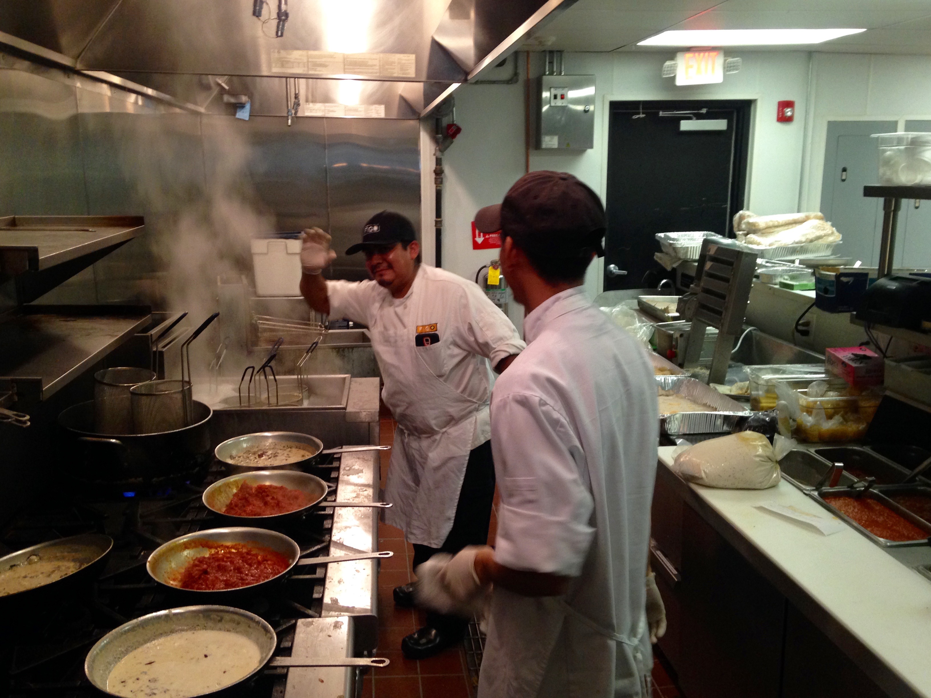 It’s nice to see a restaurant that’s not in a strip shopping center. It’s also nice to meet owner Sandro Romagnoli and his lovely family. What nice, welcoming people. They are here greeting guests and working the room. While the Romagnoli family works the room, these guys are working the kitchen.