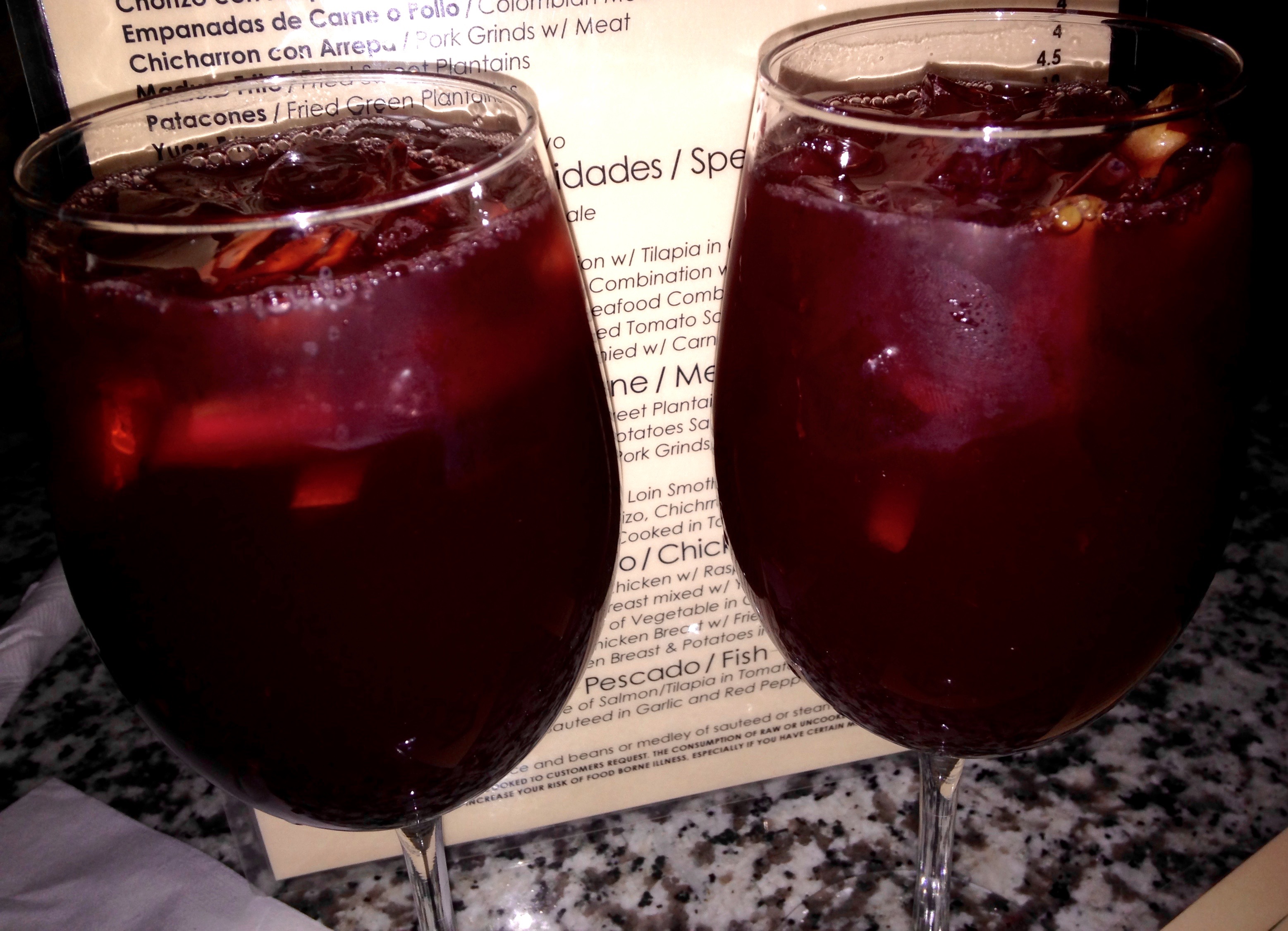 The wine list and beer list are pretty small, but you will want to go straight for the sangria. Red, white, mango or peach–there are a lot of choices. We go with the red.