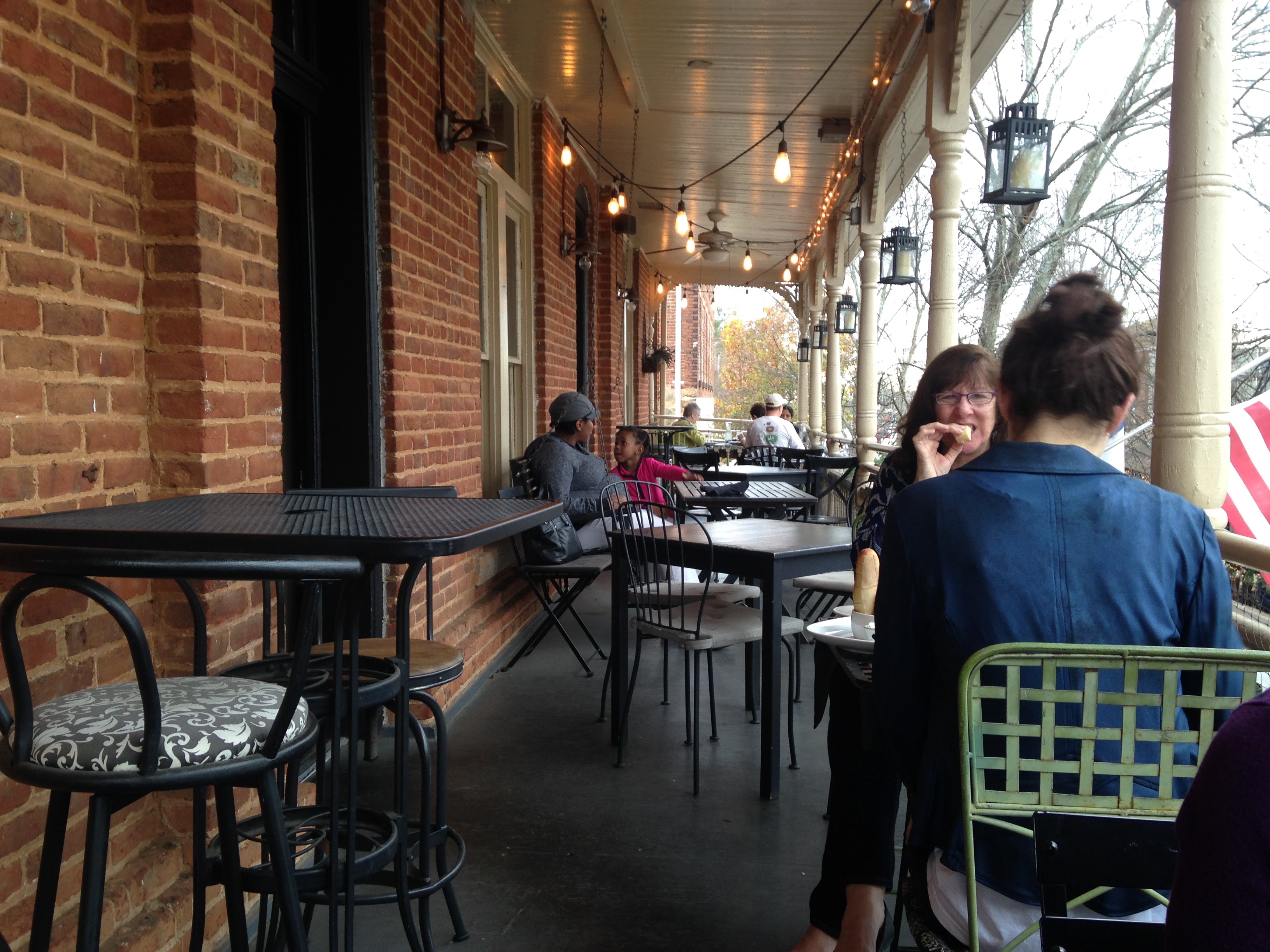 Up the stairs you go, to a large and quaint main room, a few other rooms, a bar, and a balcony with choice seating on a warm November afternoon.