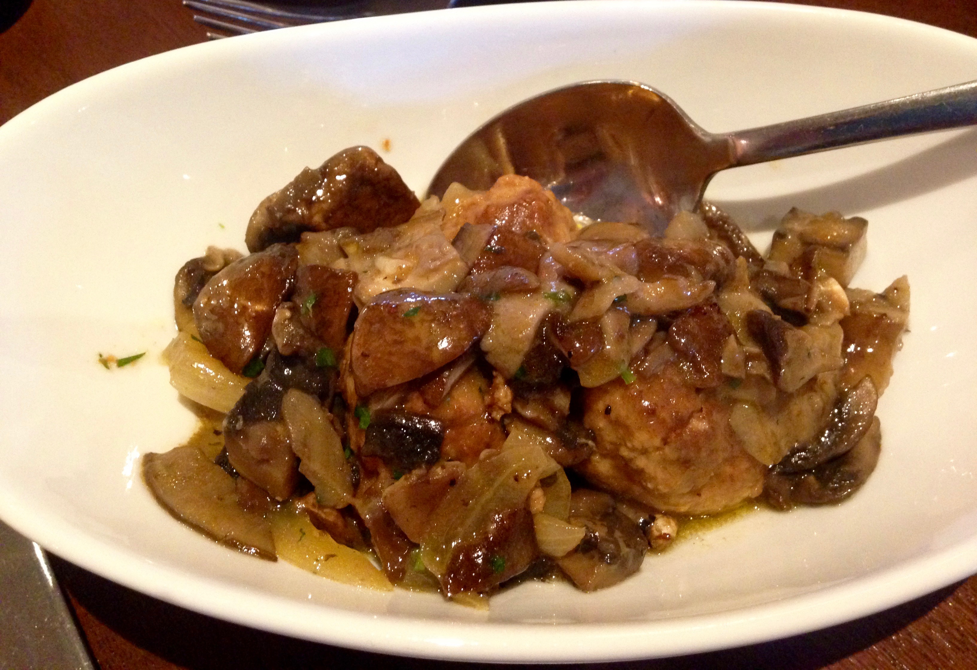 Who puts duck, rabbit and beef into meatballs? Then they cover it up with mushrooms. This is an excellent appetizer that is worth a try.