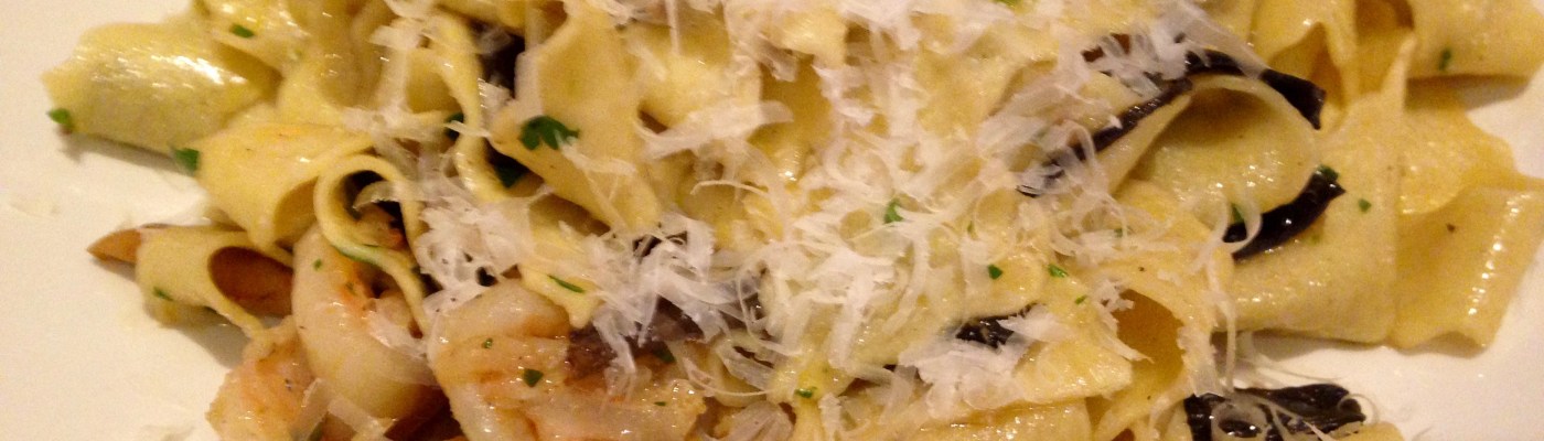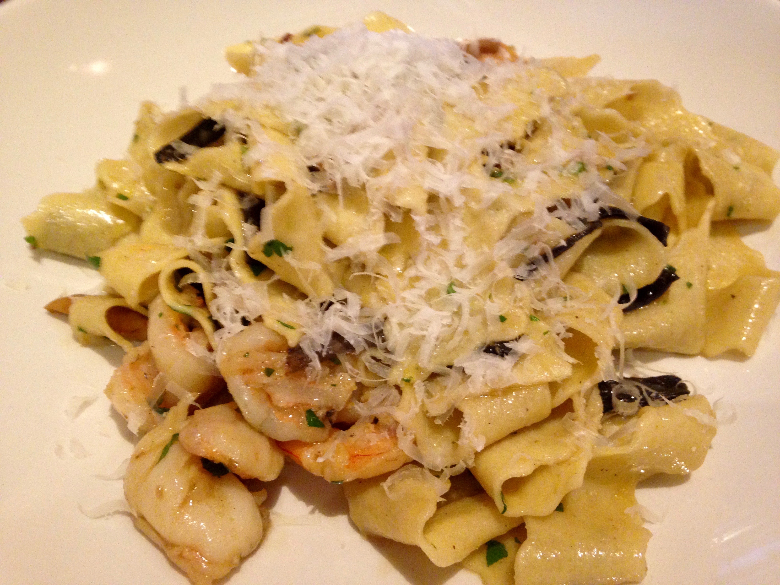 After seeing Chef Adams and his pasta machine in action, you won’t be surprised to find that we both order pasta. Eve goes for the pappardelle.