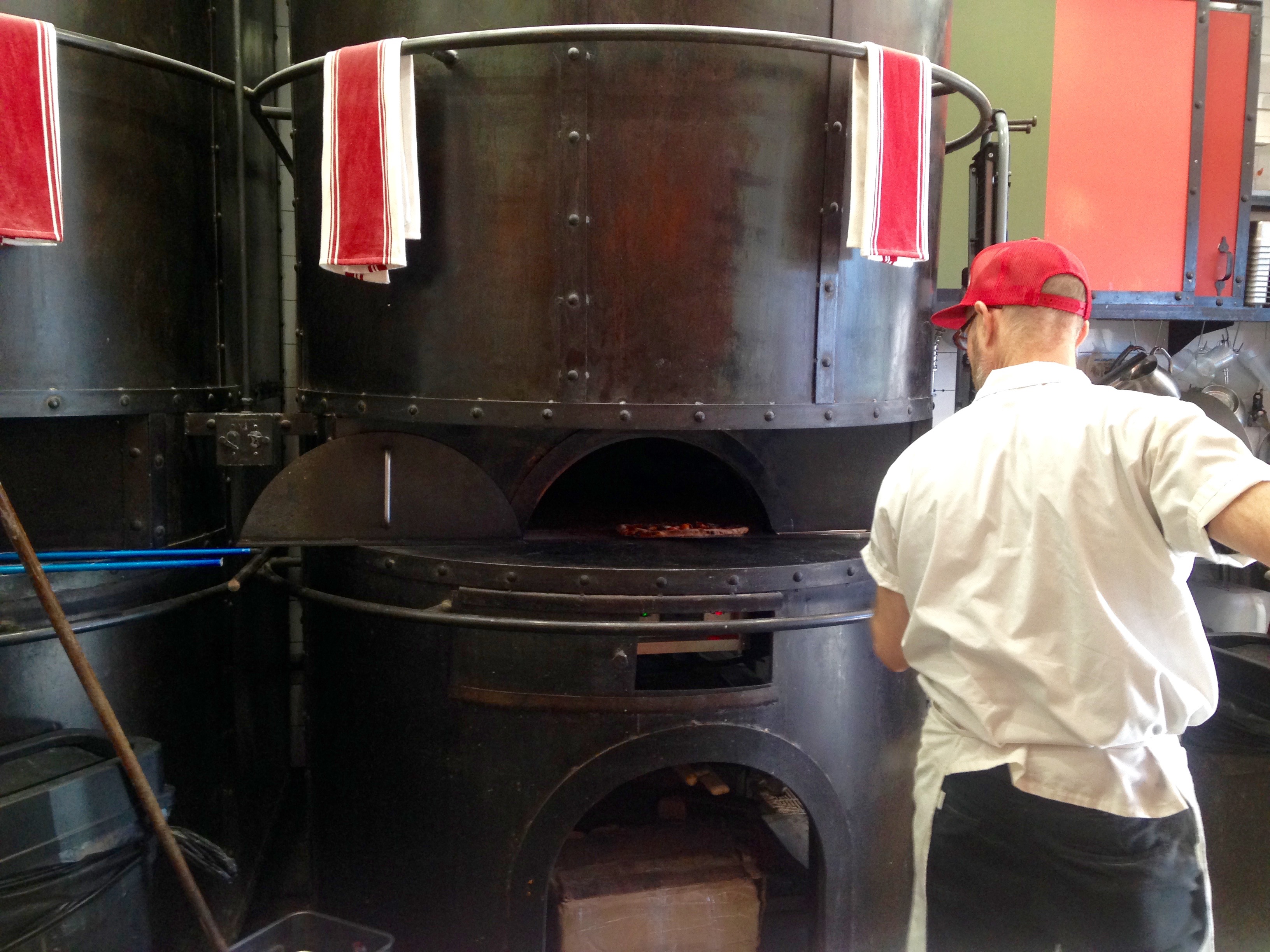 Evidently these are gen-u-ine Italian ovens from Italy. The interior bricks are made from the ashes of Mt. Vesuvius. We are not making this up. Anyway, there’s a little bit of the old country in every bite. And, as we shall see, there’s a lot of love that goes into every pizza.