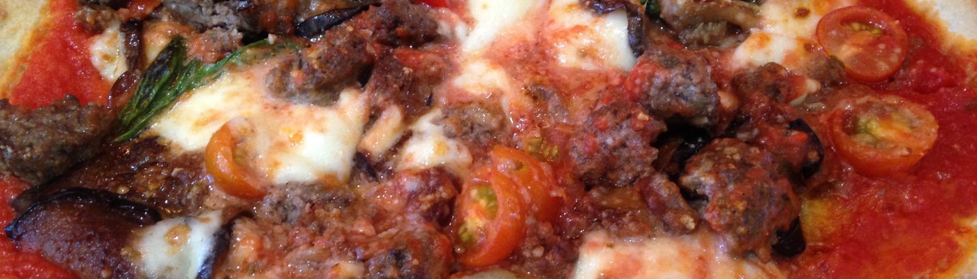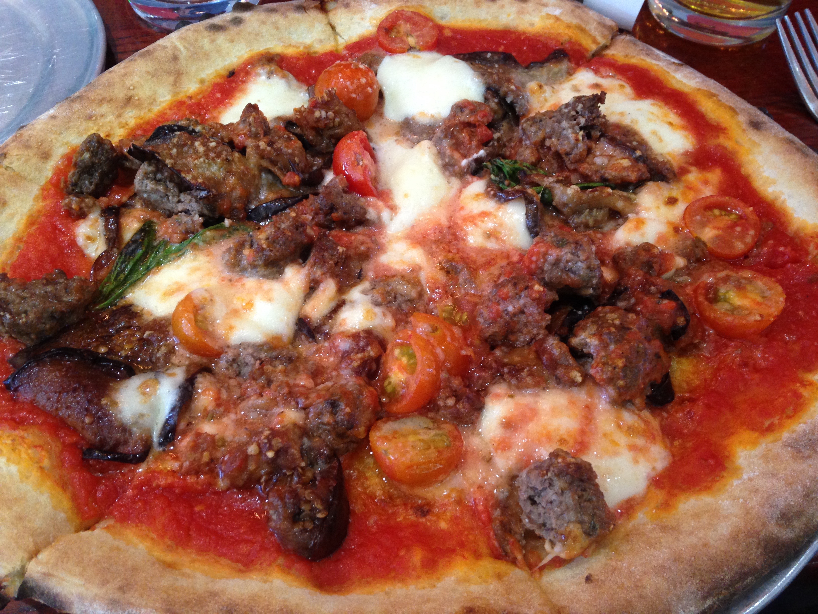 Meatballs, eggplant, mozzarella, tomatoes and basil sit atop the crust. I have not had a pizza this good in a long time. Two people can split a pizza here. We wanted leftovers, and that’s why we all ordered our own.