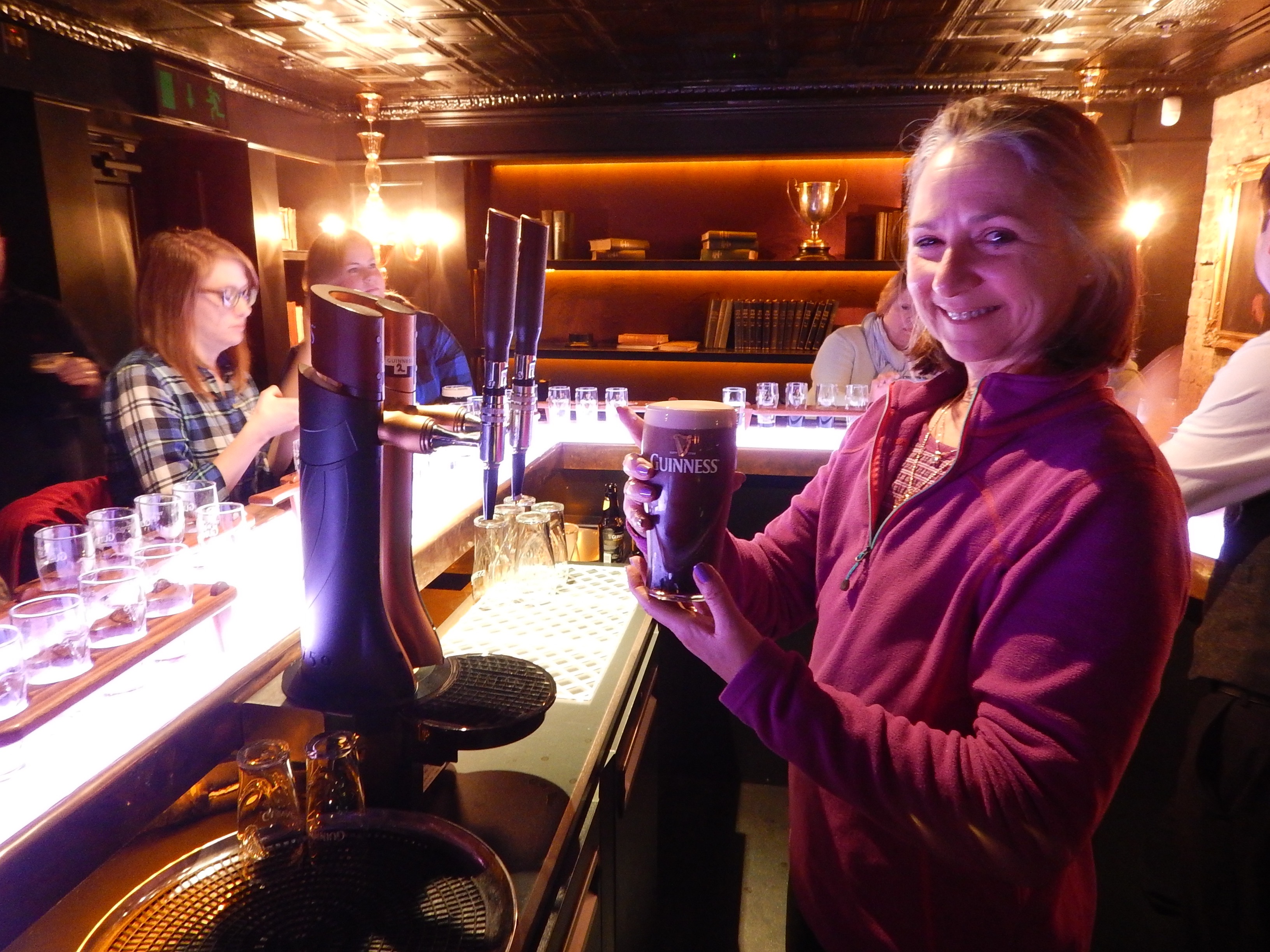 In your own private bar that seats sixteen, you taste four Guinness beers, (about 8 ounce pours) and if you are lucky, you will get a fifth beer. Ours was a new IPA they are testing. One of our beers is Foreign Extra, not available in the United States. It’s 7.5% and intended for the African markets. Yes, we are bringing some home.