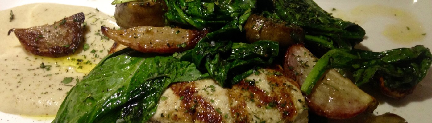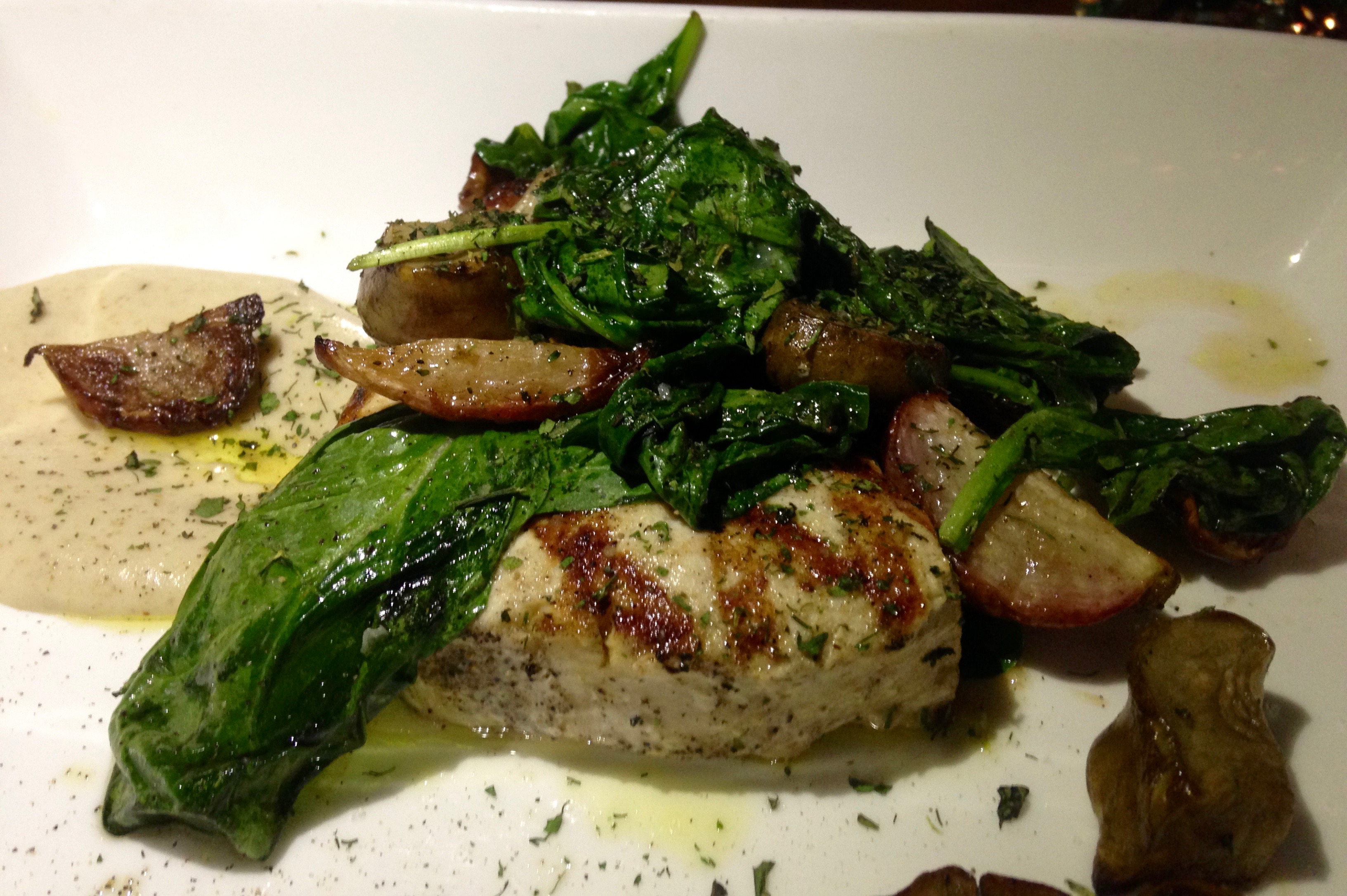 As I have found out at home it’s easy to dry out swordfish on a grill, but they absolutely nailed this. I want to go hug the chef. That’s spinach and sunchokes accompanying my fish. Both worked well with the “sirloin steak of fish”.