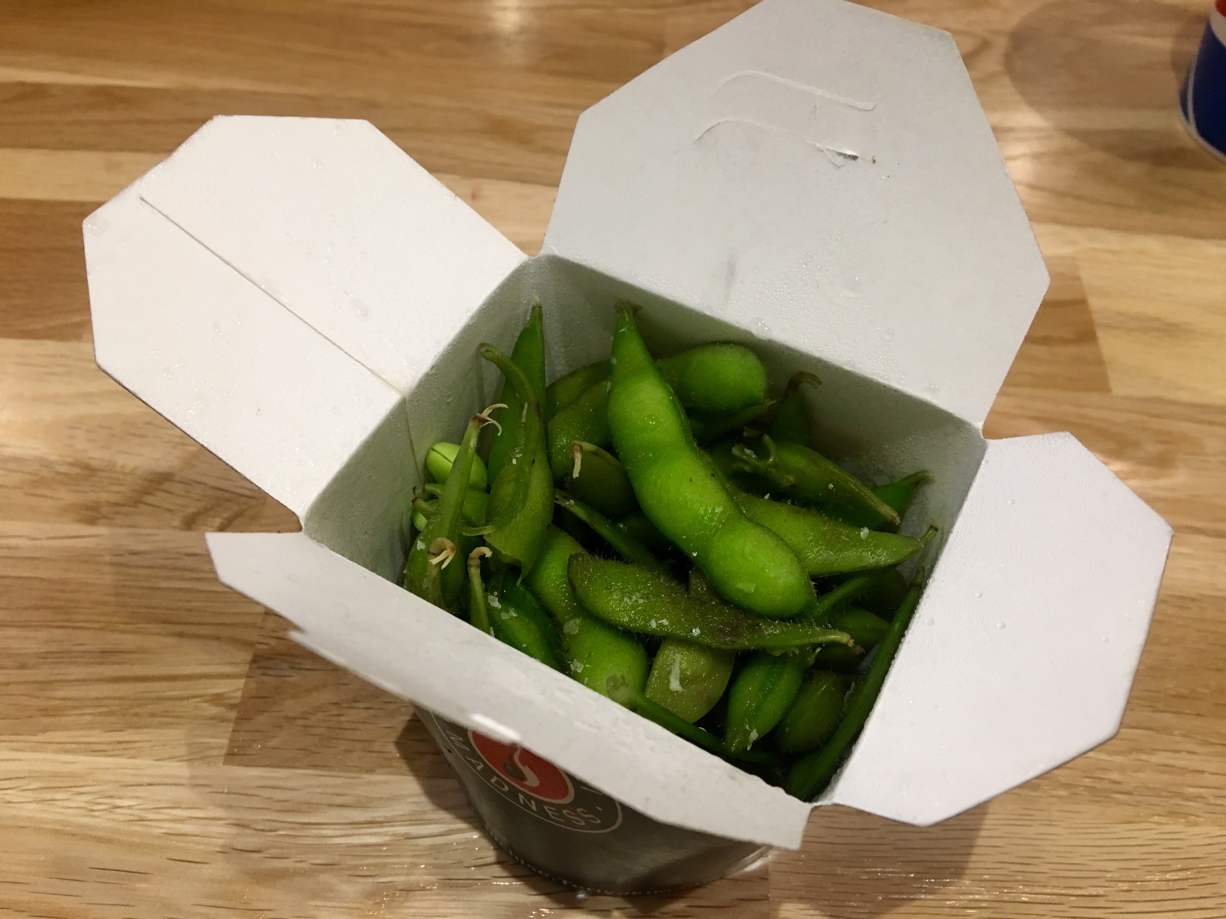 We start our with some edamame. It’s steamed, not too salty, and good for you. Maybe egg rolls aren’t as healthy.