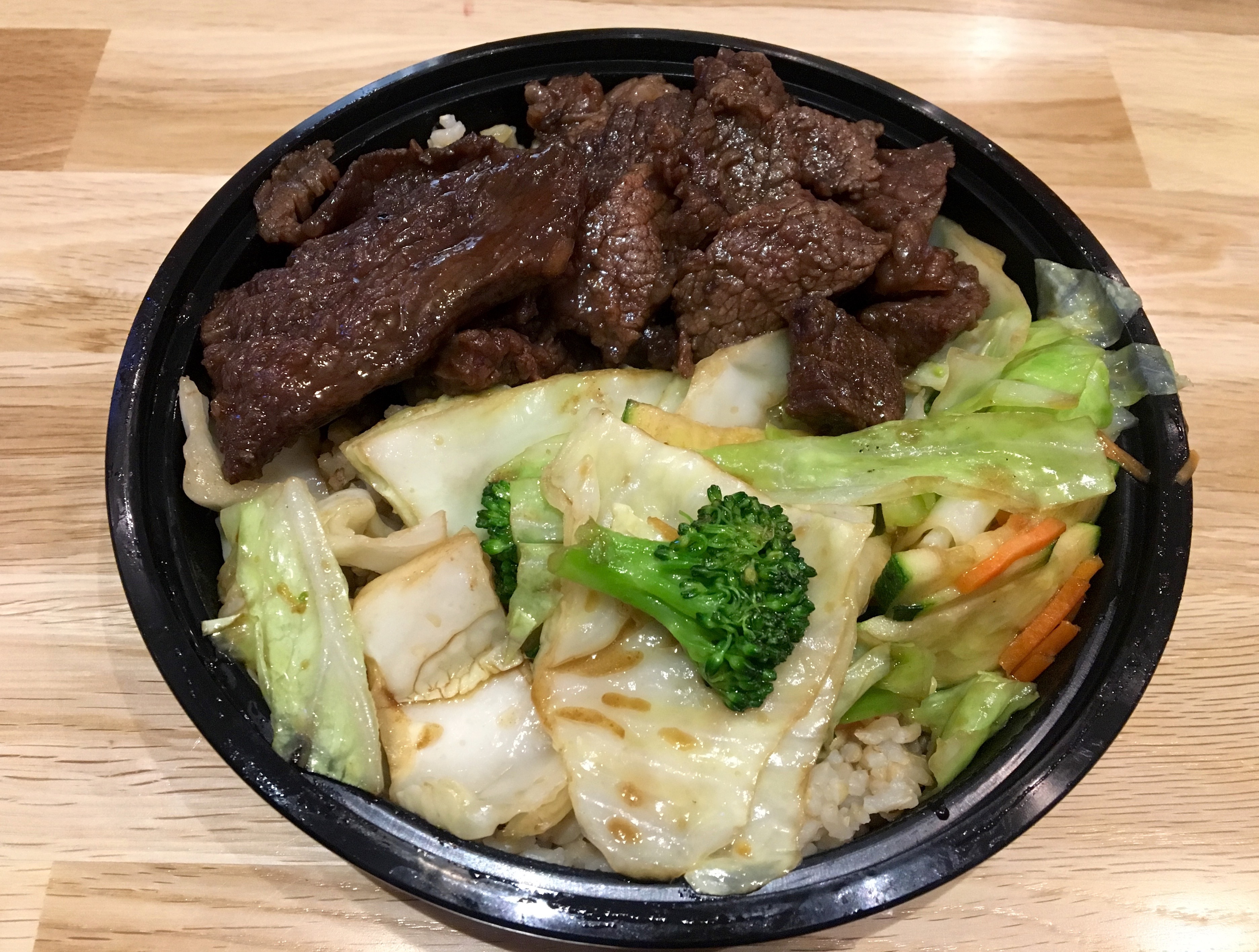 I get my bowl with fried rice and all of the veggies except onions. It’s plenty to eat for me. You can get a plate and almost double the amount of food for just a little more. Or take some home for another meal. Anyway, the bowl is full of good stuff and I really enjoy it. It’s not too salty, which is always my complaint with anything that has the word “teriyaki” in it.
