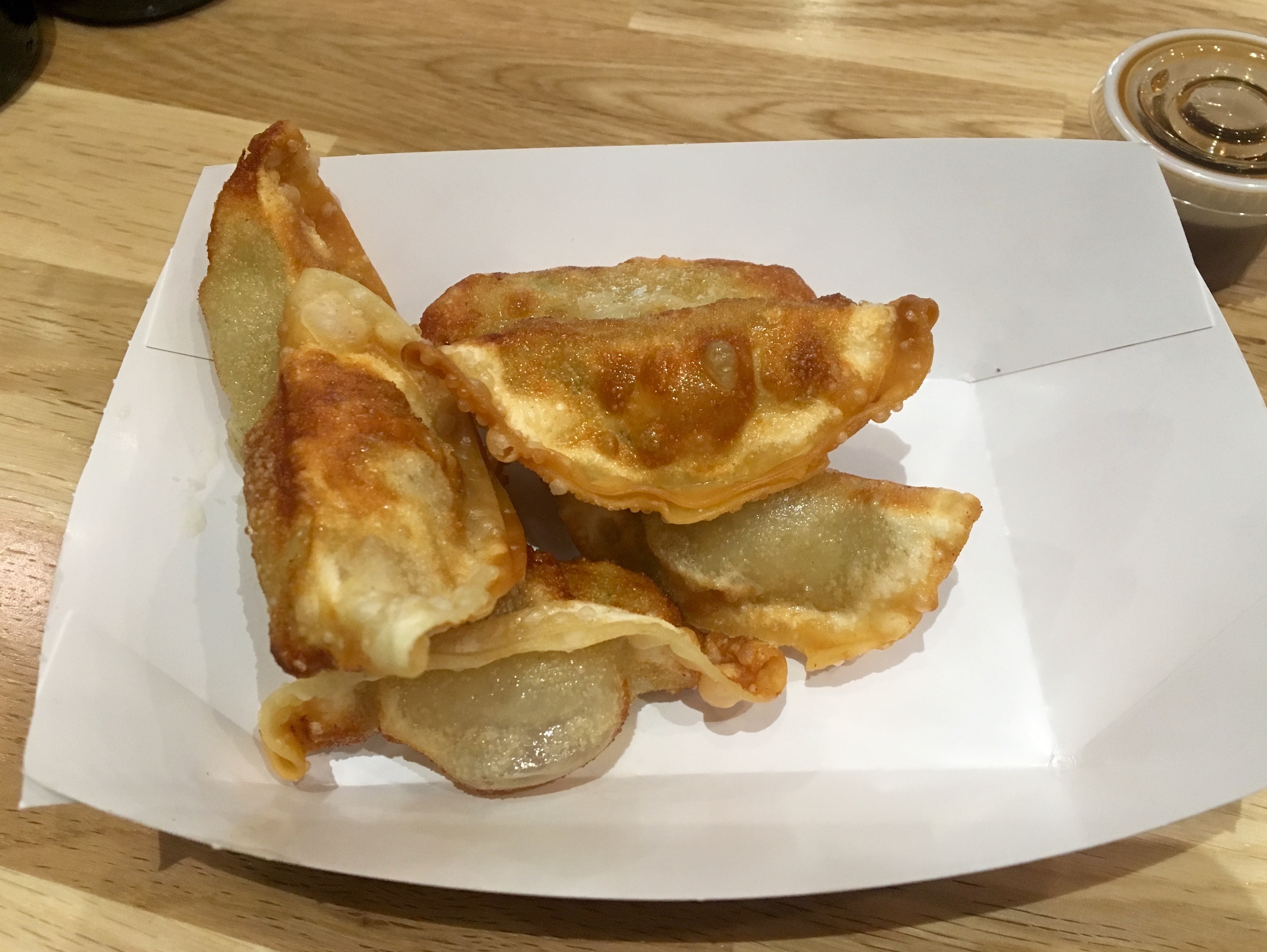 The Clevelands want us to try the dumplings, so they bring an order over.
