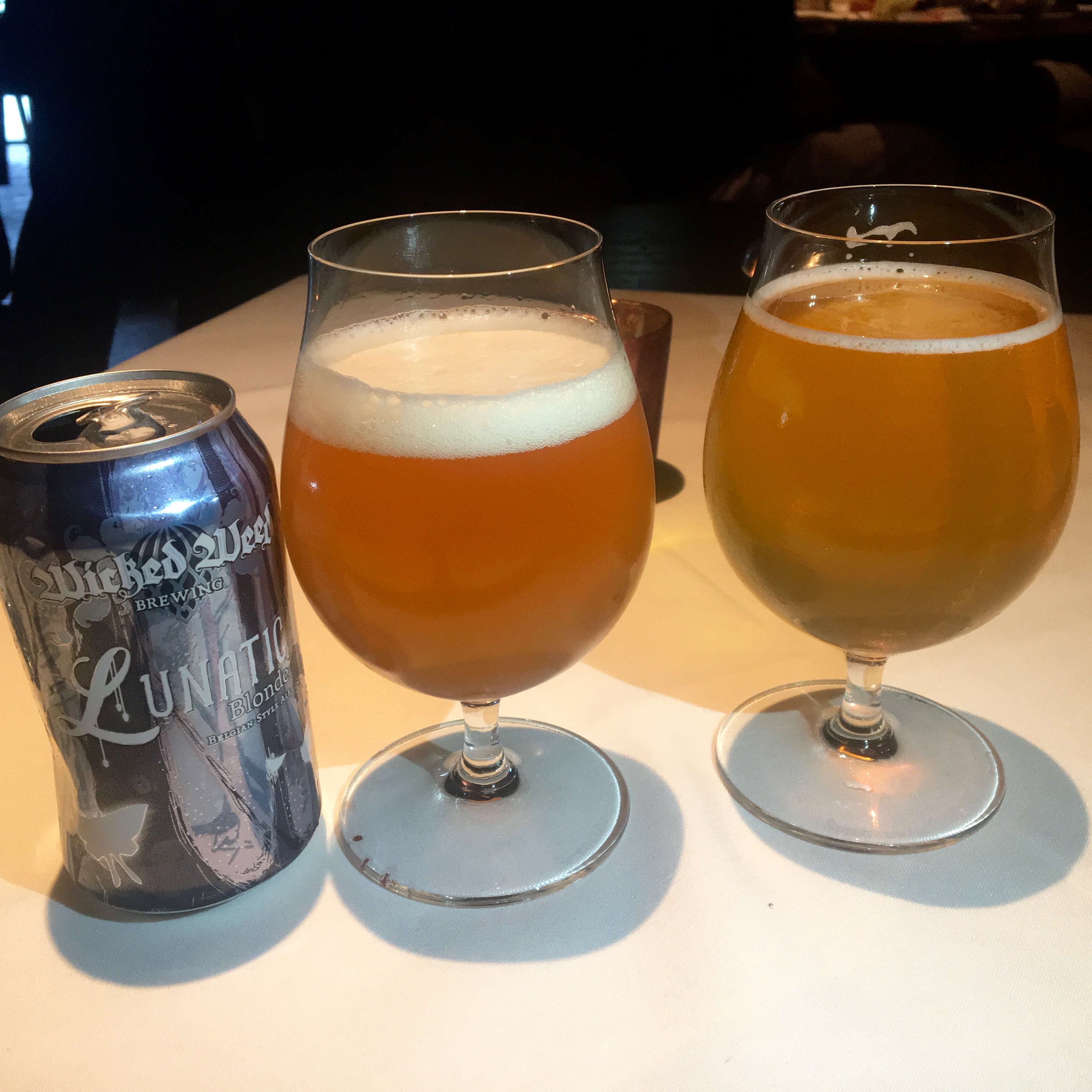 We get a canned Wicked Weed Lunatic Blonde Belgian Ale (on the left) and a Southbound Scattered Sun Wit on draft. It’s hard to believe, but both beers taste almost the same. Maybe they share the recipe.