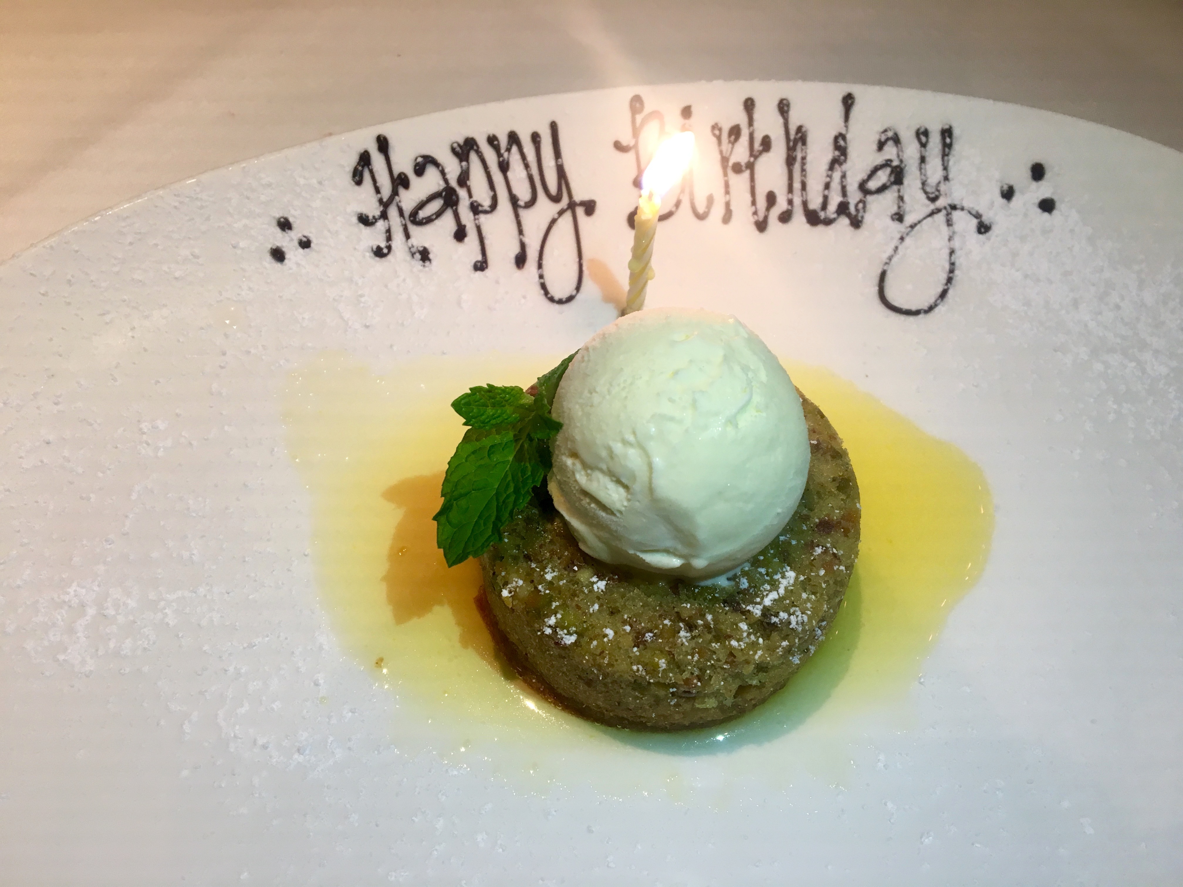 The grand finale is dessert. Because it’s a birthday, we can pick anything on the dessert menu. What’s the birthday girl going to choose?