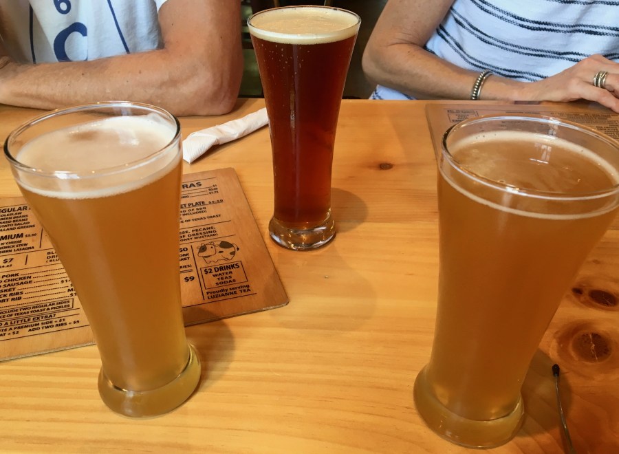 We are here for a lunch date with our pals Bev and Charlie, who live in the newly minted city of Brookhaven. We don’t usually have a beer during lunch, but what the heck. It’s summer and we don’t have anywhere to be all day.