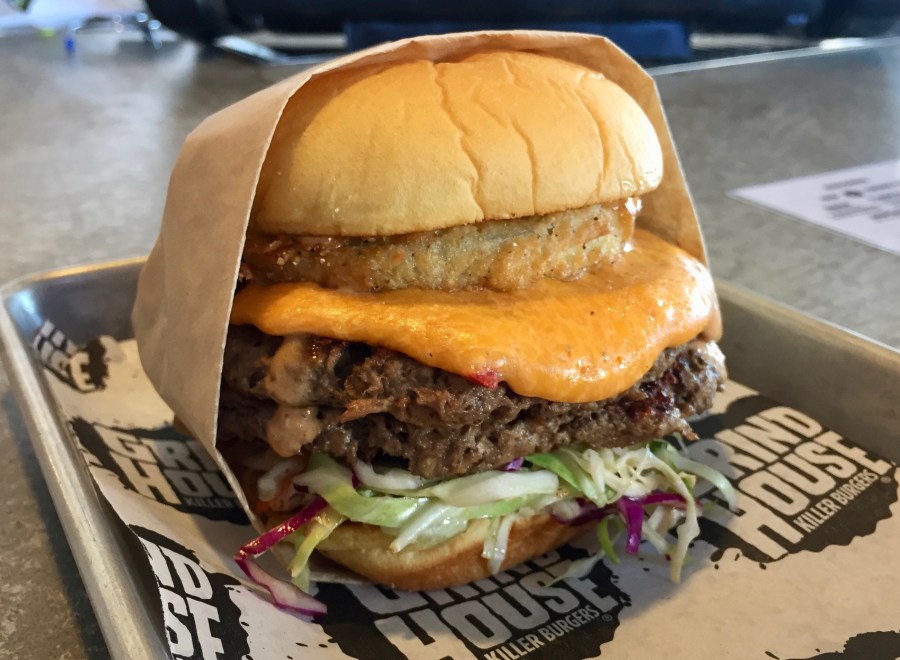 Brounstein (in the red shirt), who has taken Grindhouse from a stall in the Atlanta Municipal Market to a five-location “mini-chain”, tells us that they cook the burger just like meat. About half of the veggie burgers sold at Grindhouse are now the Impossible Burger. Right now, Grindhouse is one of the only places in Georgia where you can get this burger. You will see it at other local restaurants in the future.