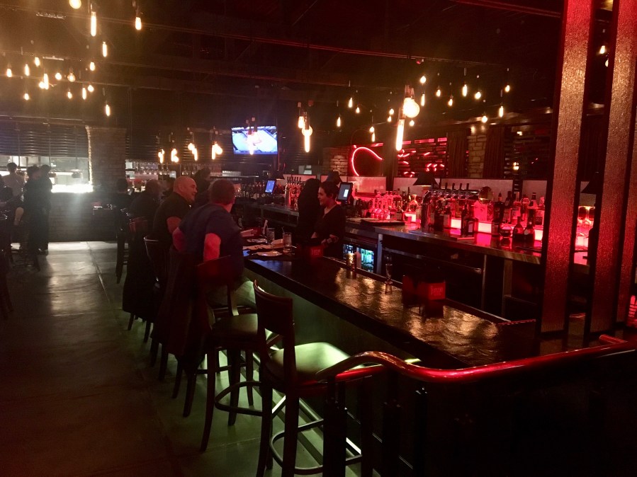 Sage boasts four locations, so somebody must be doing something right. Alas, as you will soon see, nothing goes right for us here. There’s a bar and lots of red neon.