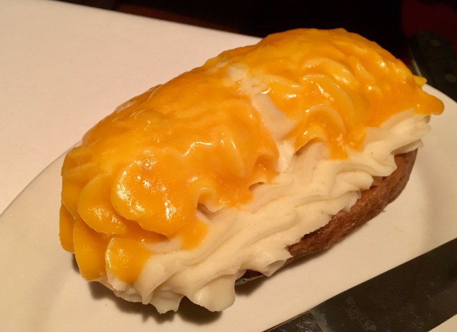 The twice-baked potato is almost as big as your head. We waddle out of Hugo’s, very satisfied with our choices.