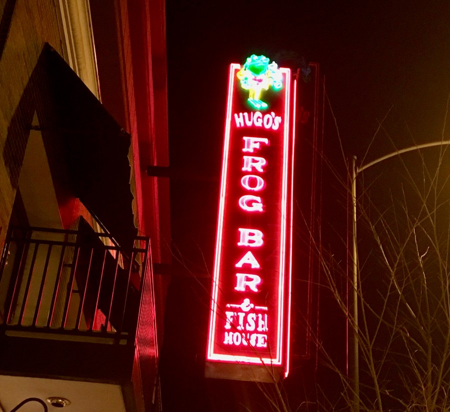 It’s time for dinner, and we hop over to Hugo’s Frog Bar for a Chicago steak.