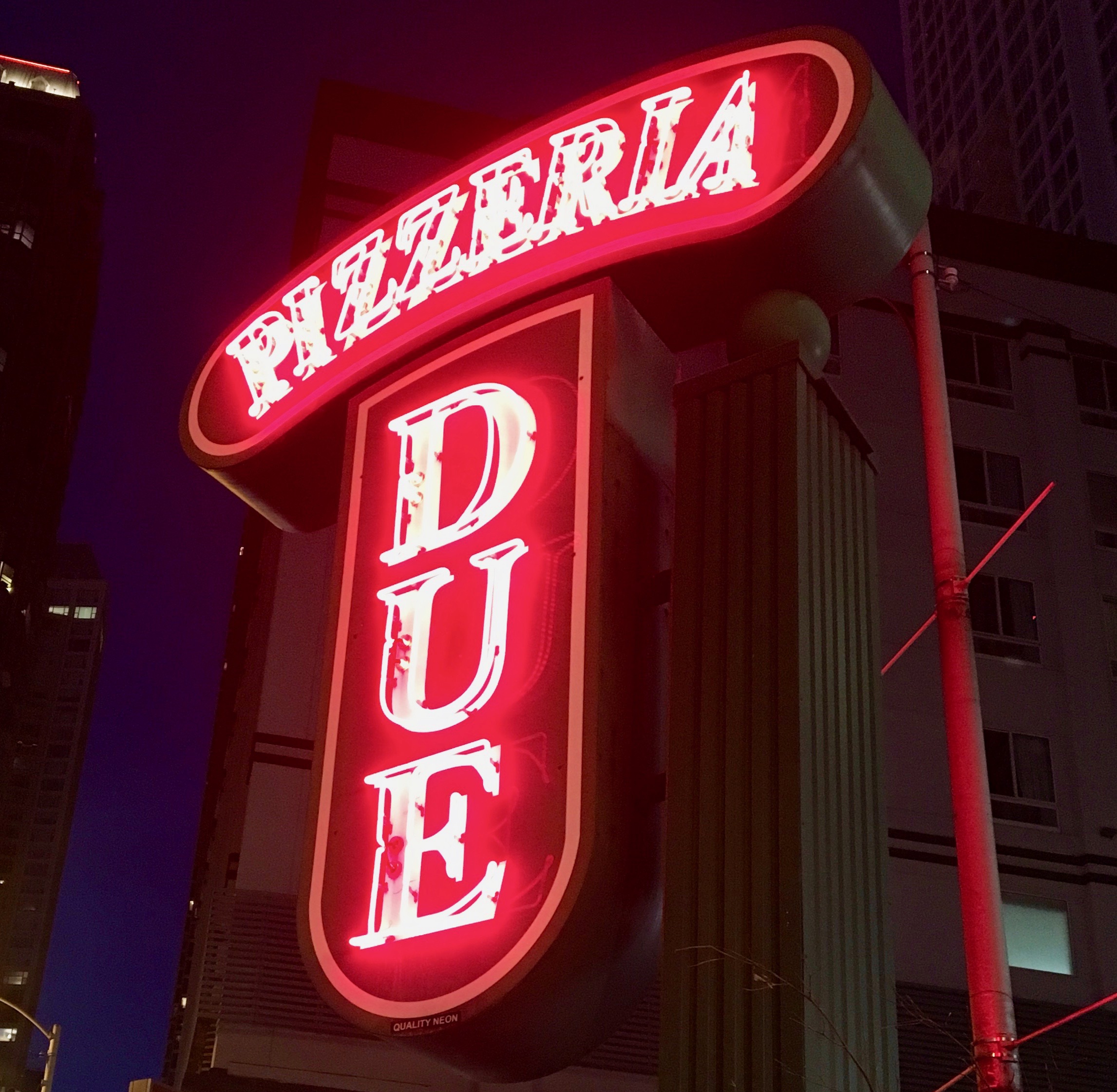 We are supposed to take a “Devil in the White City” bus tour after brunch, but the bus never shows and the tour gets cancelled. Just our luck. No worries–it must be time to eat again. When in Chicago, you must eat Chicago pizza, the city’s deep-dish, gooey take on the Italian classic. A good place to go is Due. (Pronounce it “doo-ay”. Like the number two in Italian.)