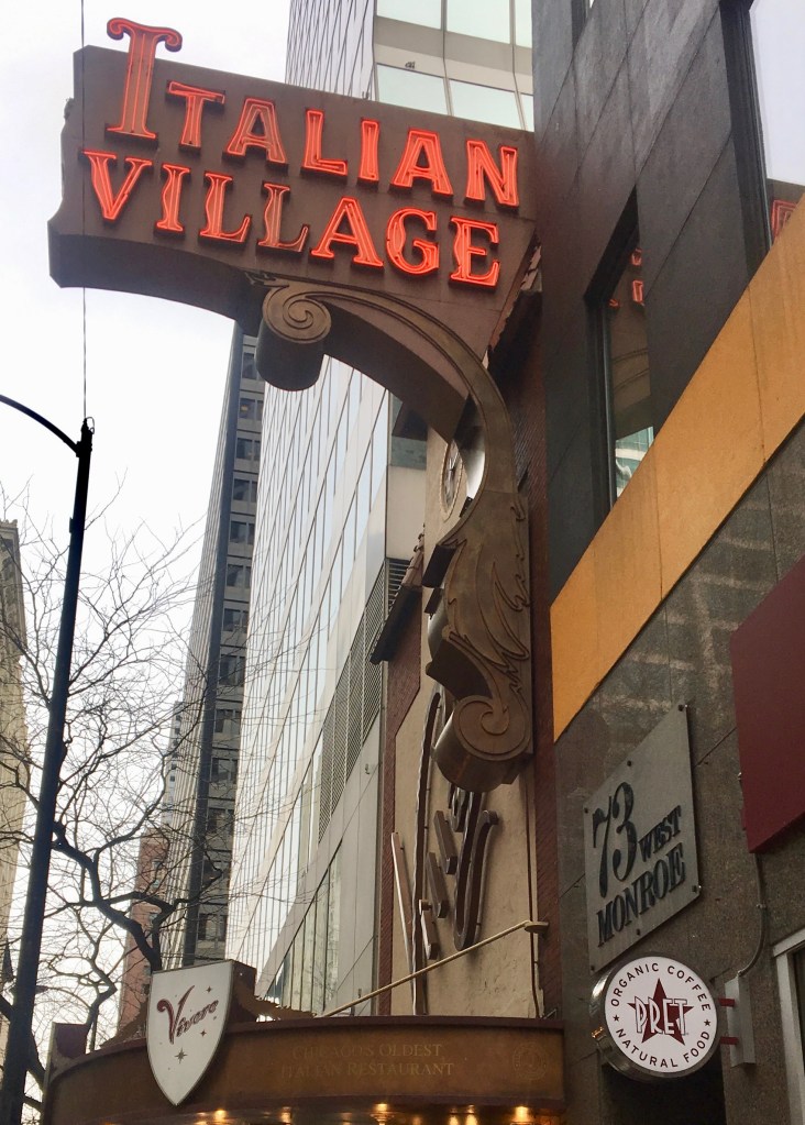 Are we full yet? Yes, but we are still eating. For our pre-theater meal, we go to the oldest Italian restaurant in Chicago.