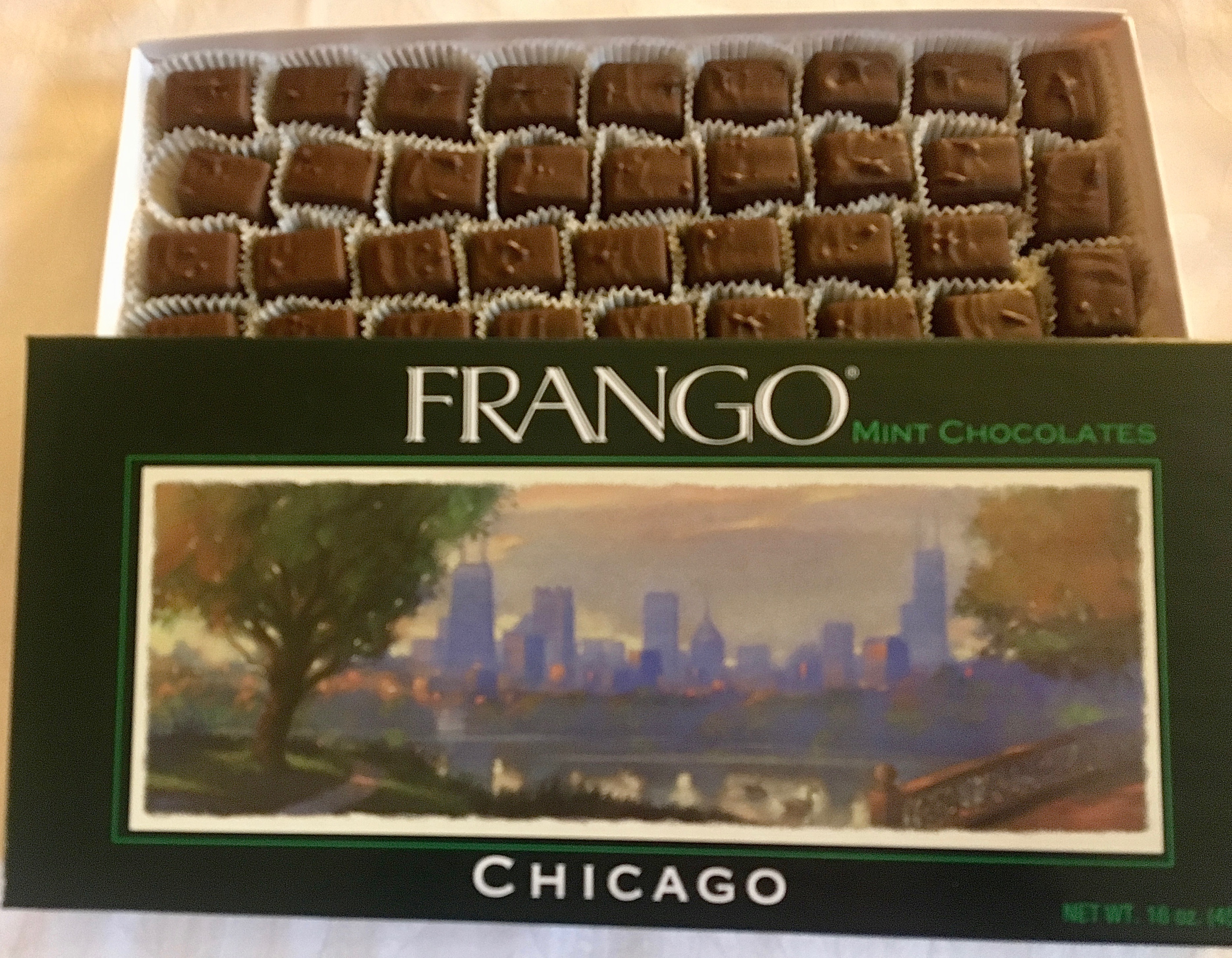 They have been making these things since 1929, first at Marshall Fields, and then at Macy’s, who bought them out in the early 2000’s. Only the Frangos sold in Chicago are made in Chicago. The rest are made in Pennsylvania. Now you know.