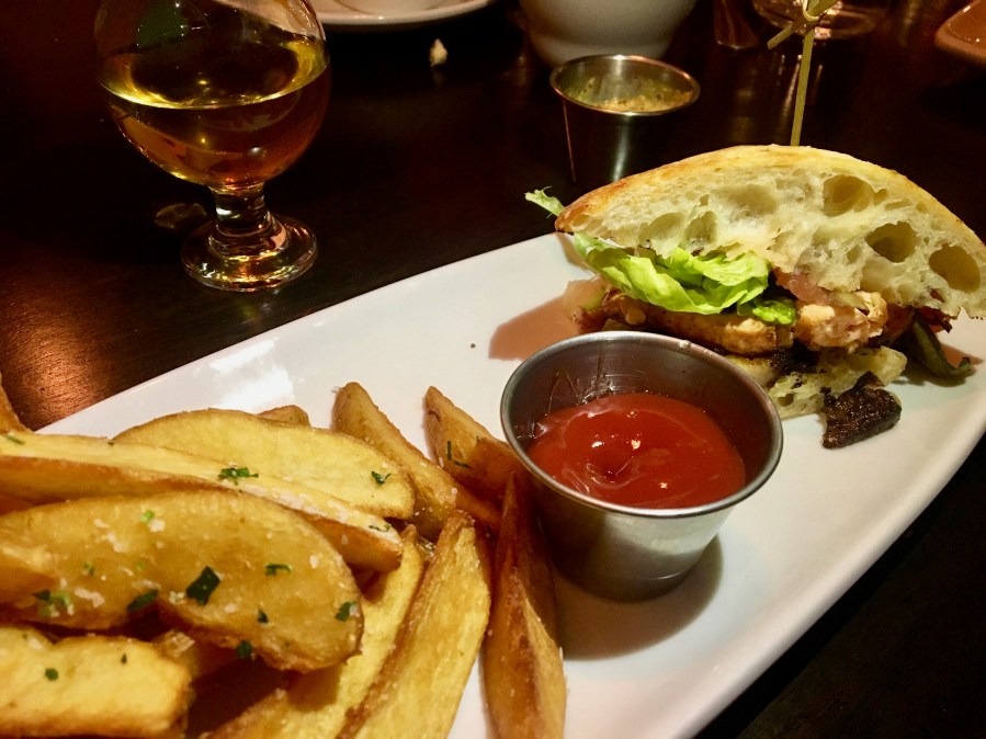 The menu can be described as gastropub-centric, with burgers, sandwiches, and about seven entrees. We are pretty full by the main course, so we decide to split the salmon BLT.