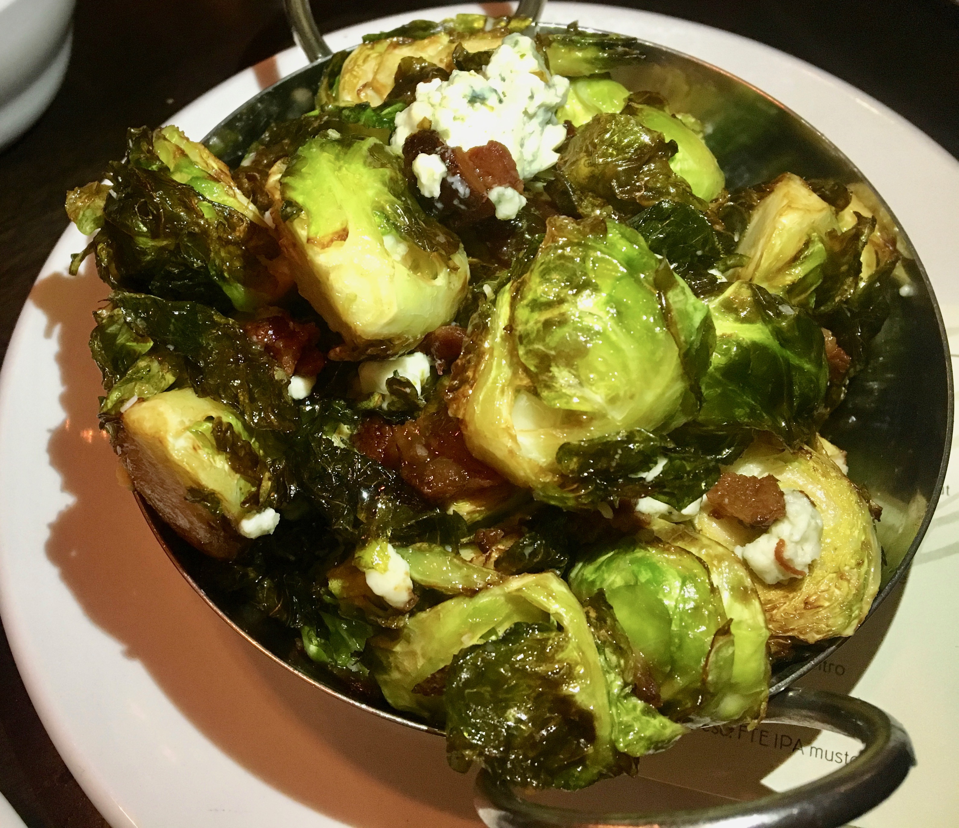 Someone in the kitchen knows how to use a mandolin. At least we think he/she does as we found no finger parts in these thinly-sliced chips. They cover them with bacon and bleu cheese, and because they are gluten-free, they must be good for you. Or not.