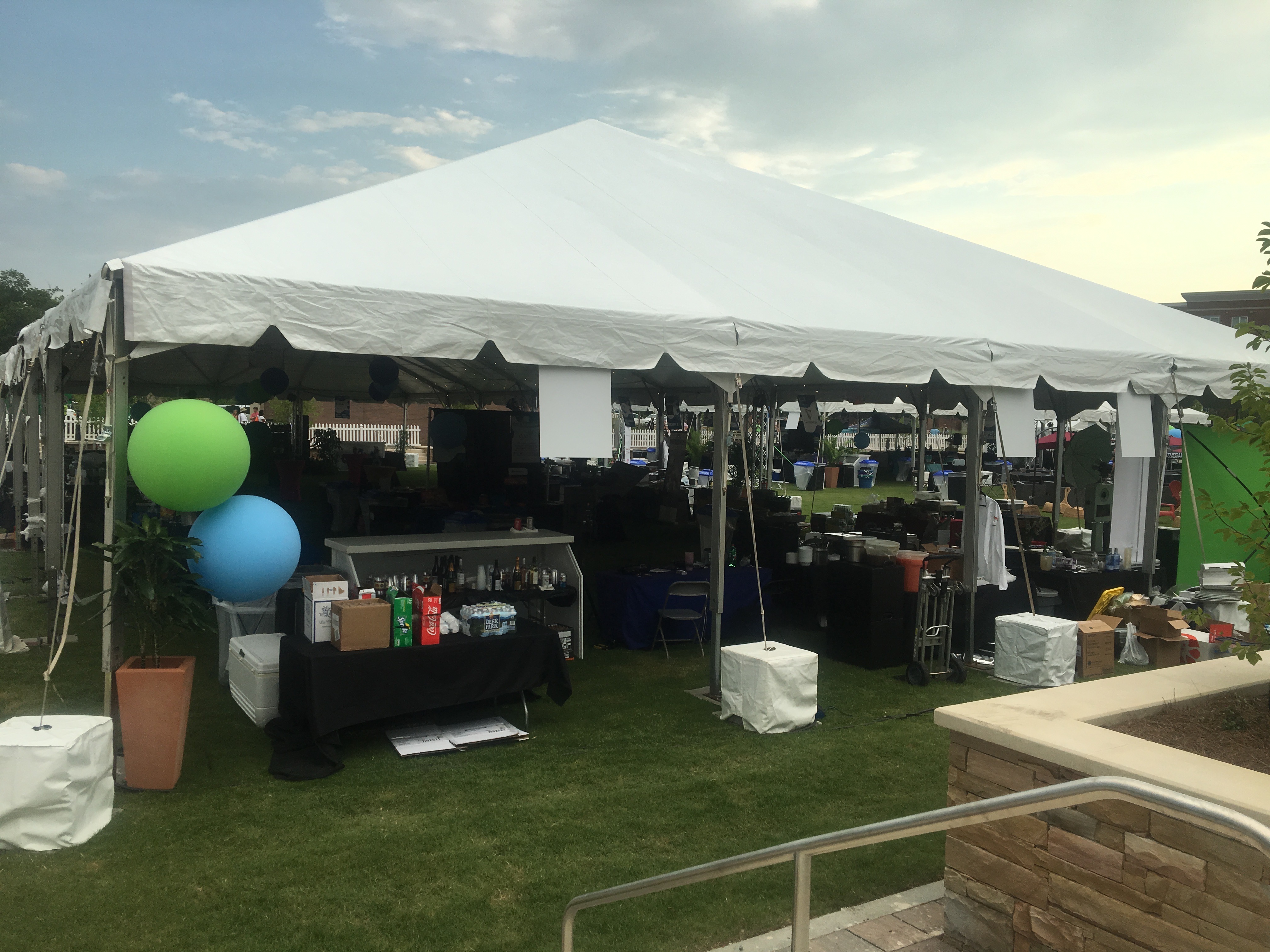 Everyone must leave the metal-poled tents, also known as lightning rods until the storm goes away. Not fair. After about an hour, people are allowed to go back under the tents.
