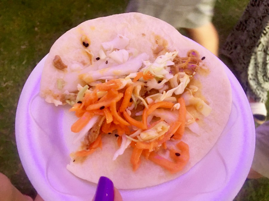 We quickly realize that we should be sharing our food. That way we can try more things before the tank gets too full. The Thai chicken tacos from Taqueria Tsunami are a hit.