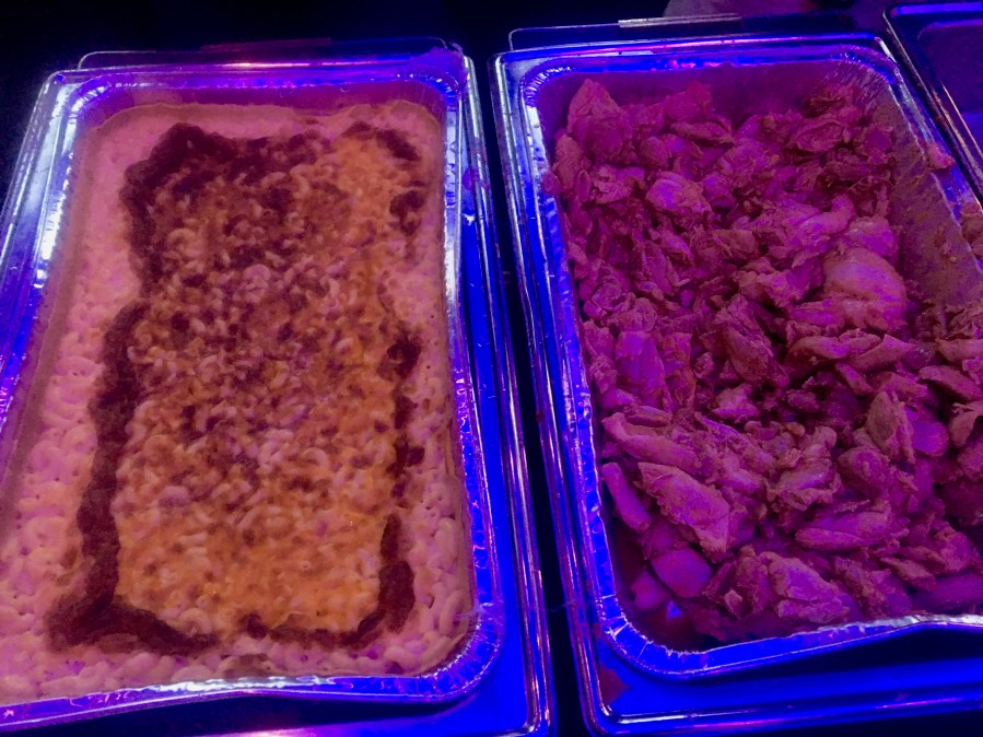 Trust us, the mac and cheese is just right. It’s not blueberry flavored. We did not have too much to drink.