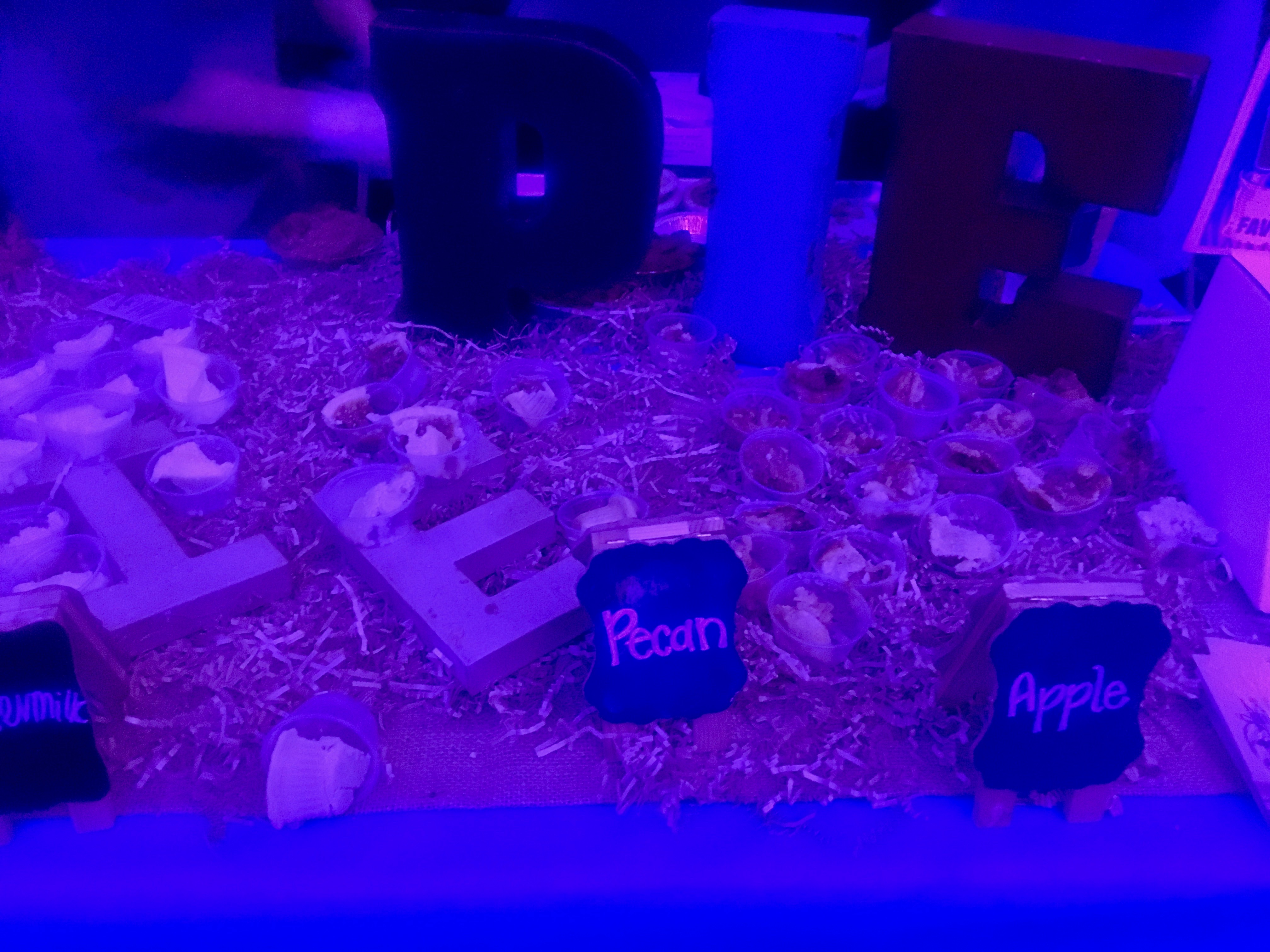 The Buttermilk Sky pie table is one of the best displays. We include the blue-tinted picture so you can get an idea of how they display their wares.
