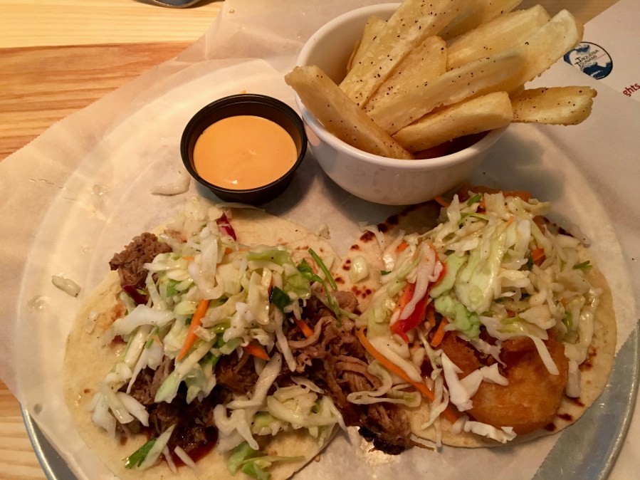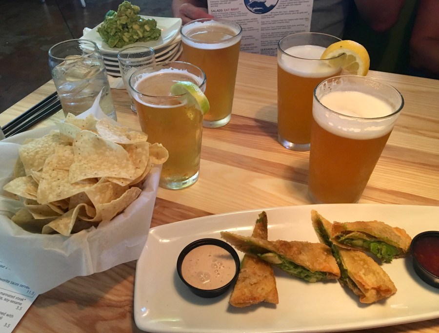 All of the tacos are delicious. You really can’t go wrong. Platters are available with two tacos or three. Two is plenty (it comes with a side), unless you are really hungry. Between the tacos, beer and appetizers, we are very full when we leave.