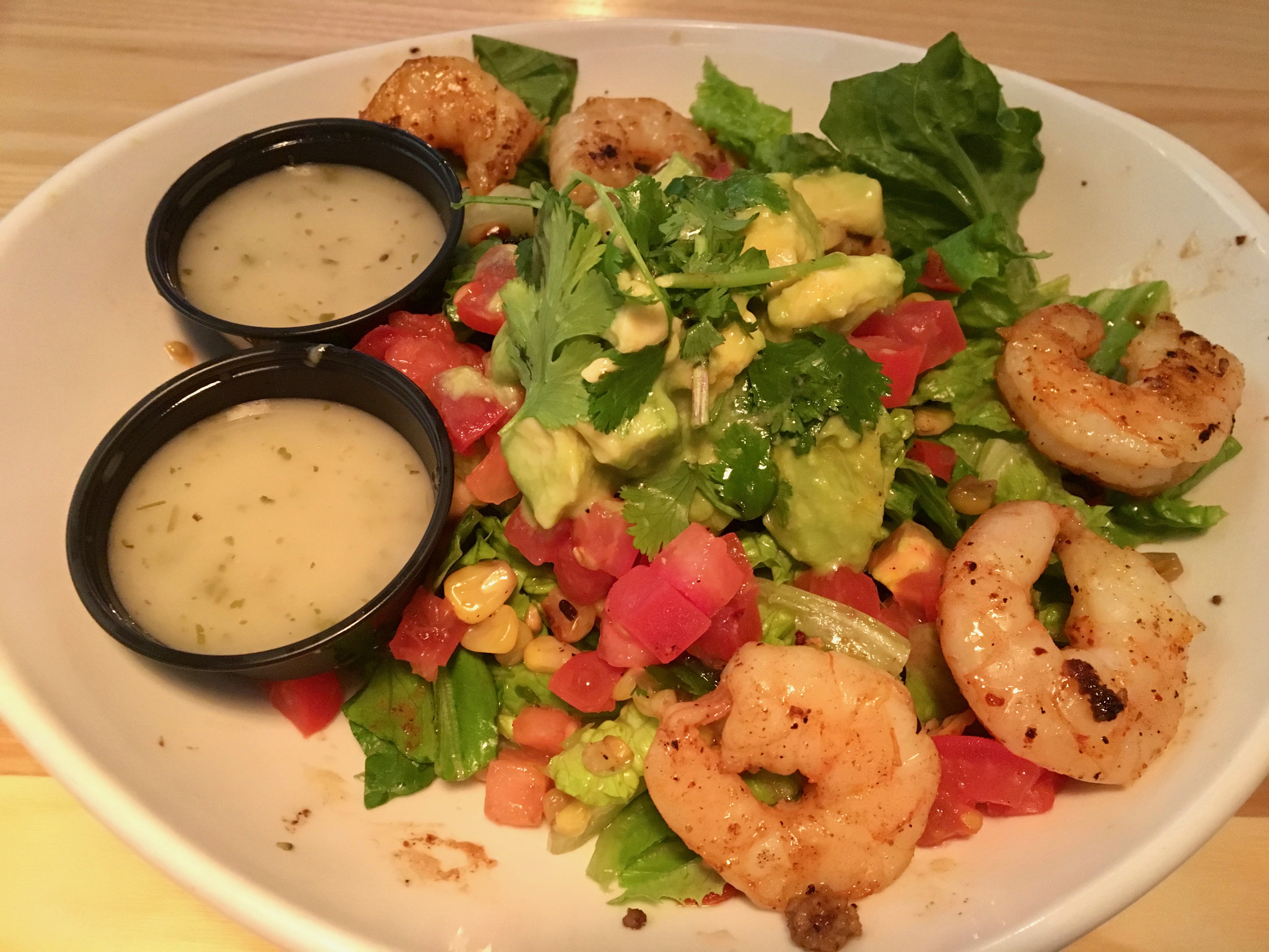 Stefanie’s salad comes with plump, juicy shrimp and more of that yummy avocado.