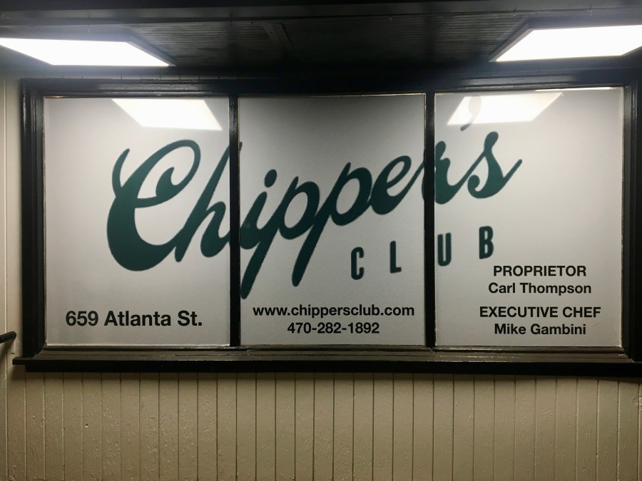 Every month or so we get together with our pals Stefanie and Bill for our meeting of the East Cobb Dining Society. We take turns picking the restaurant. Our friends like to pick places that we have not been so that we can get out the iPhones and take pictures of all of our food. Tonight, we visit a place in Roswell that has been a million different restaurants, but is now known as Chipper’s Club.