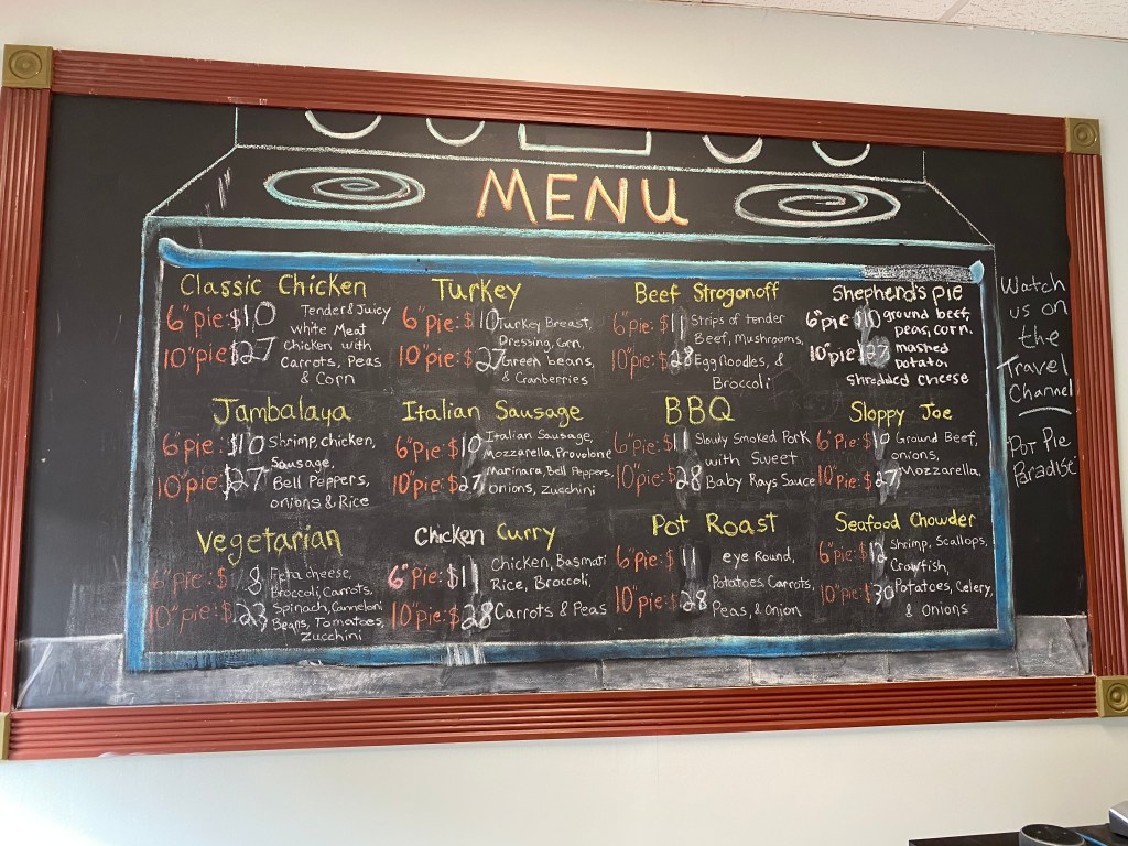 Paul’s pot pies are famous in these parts. At least the sign says so.
