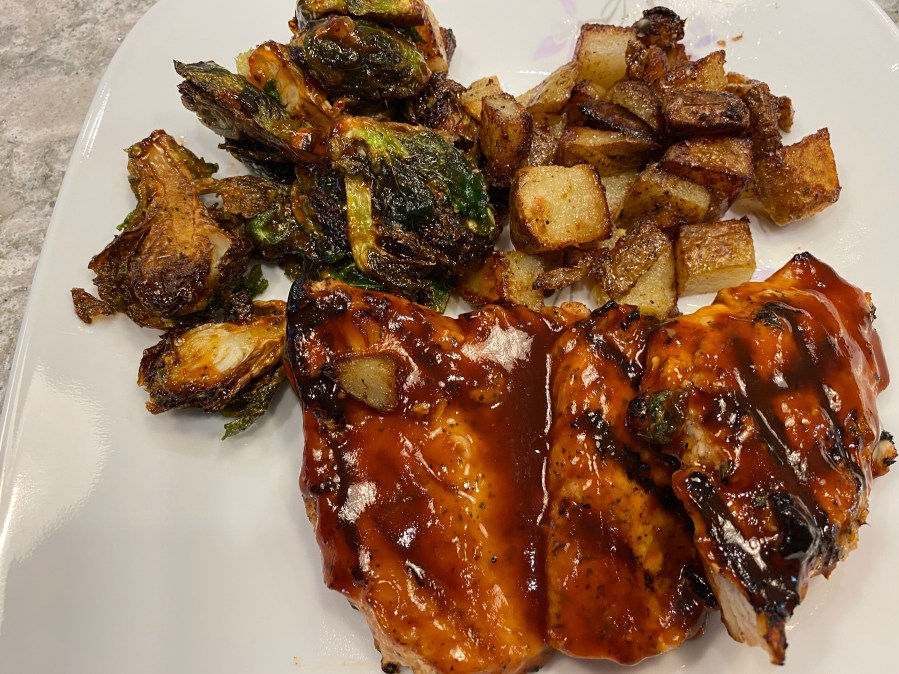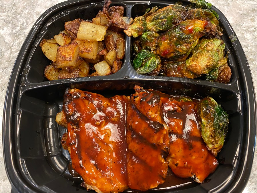 When you order an entree, it comes with two sides. Eve gets the BBQ chicken breast. There’s a lot of tasty chicken on the plate. For sides, she orders Brussels sprouts and herb roasted potatoes. The sprouts are really good. After he sautés them, Chef Q puts them into the deep fryer for a couple of minutes, which really adds to the flavor. As we learned a long time ago, everything is better after spending time in a deep fryer. The taters are also well-cooked, crispy on the outside and soft on the inside with a nice flavor from the spices.